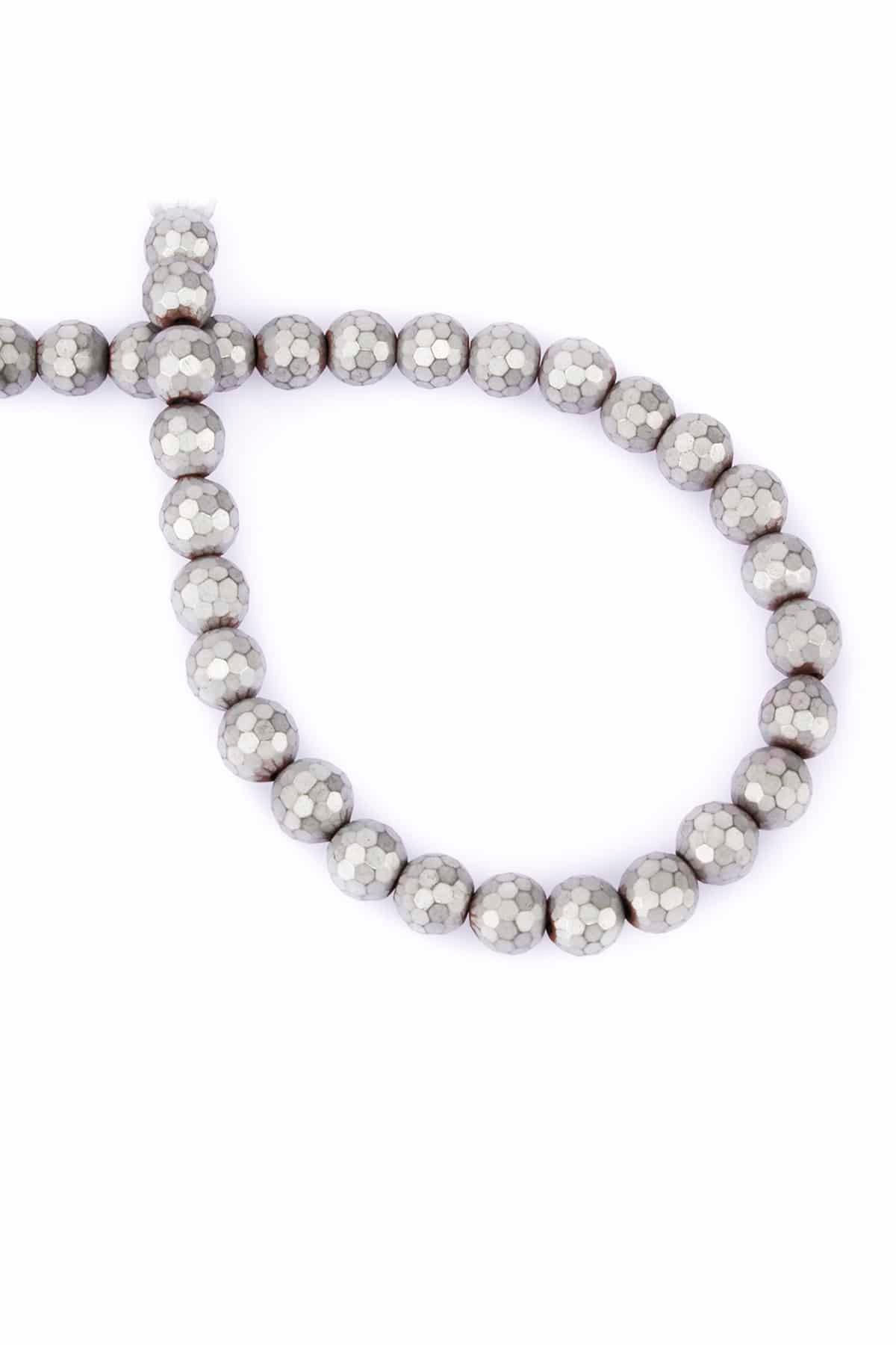 Hematit Doğal Taş Açık Gri Küre Faset Kesim 8mm Dizi (5333-0004)