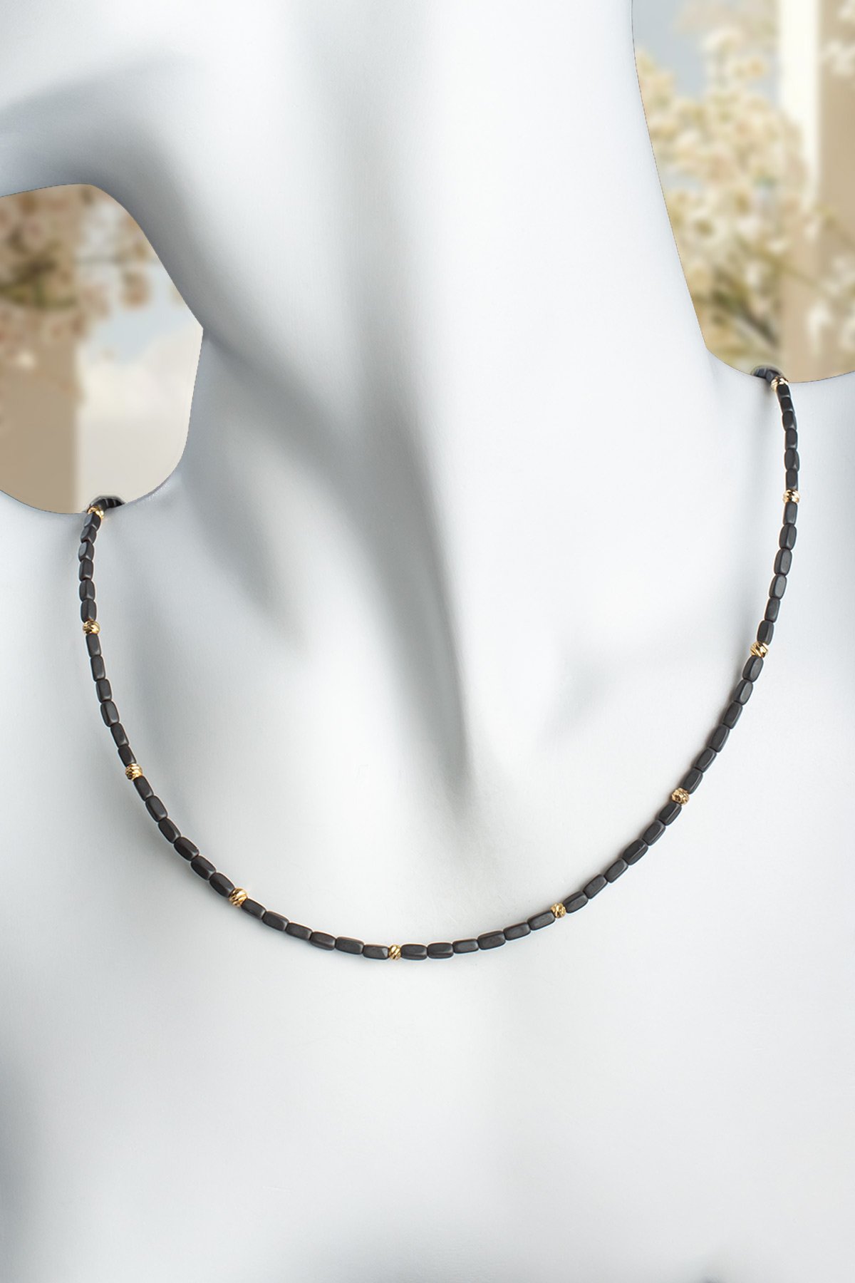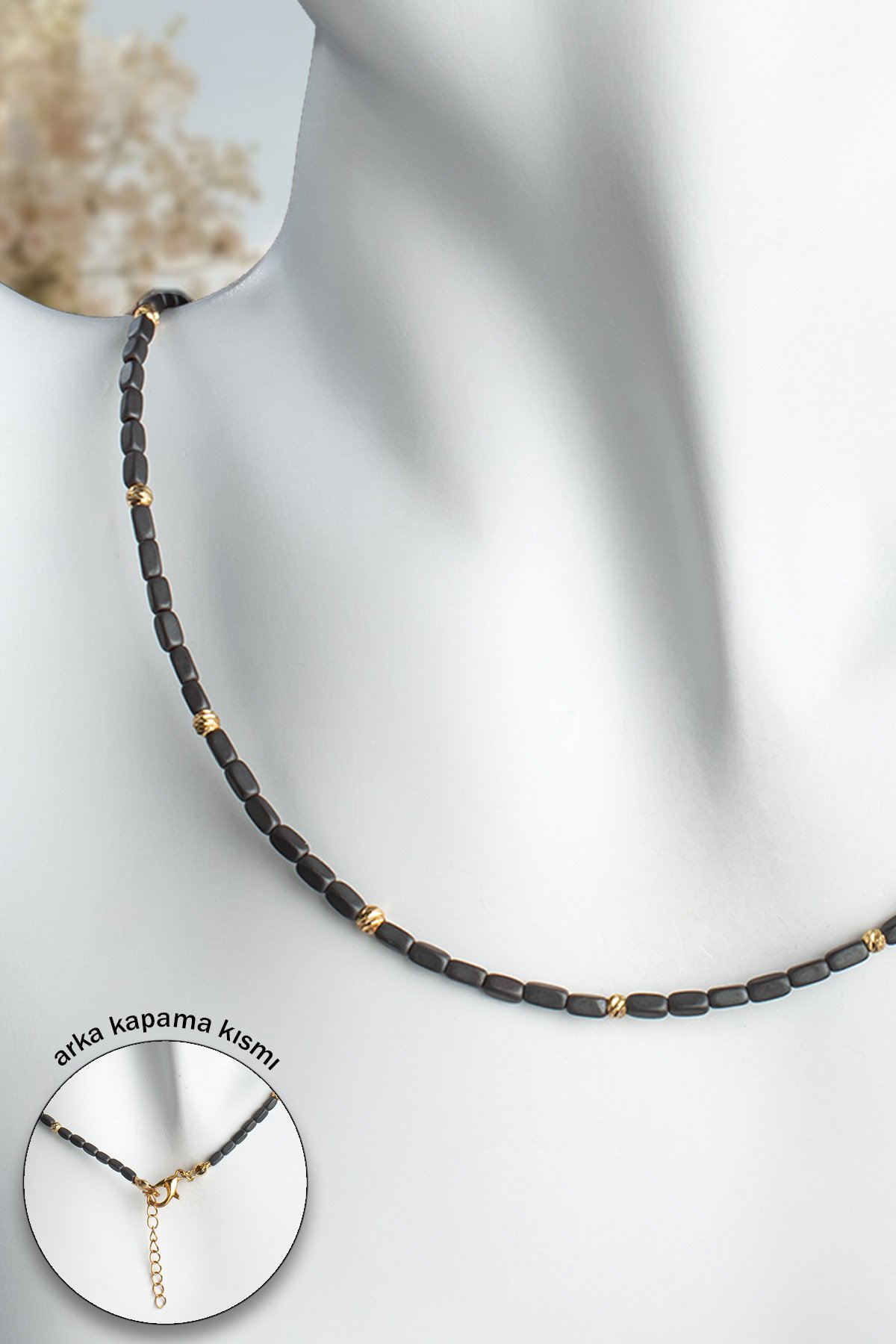 Hematit Doğal Taş Dikdörtgen Kesim Dorikalı Kolye