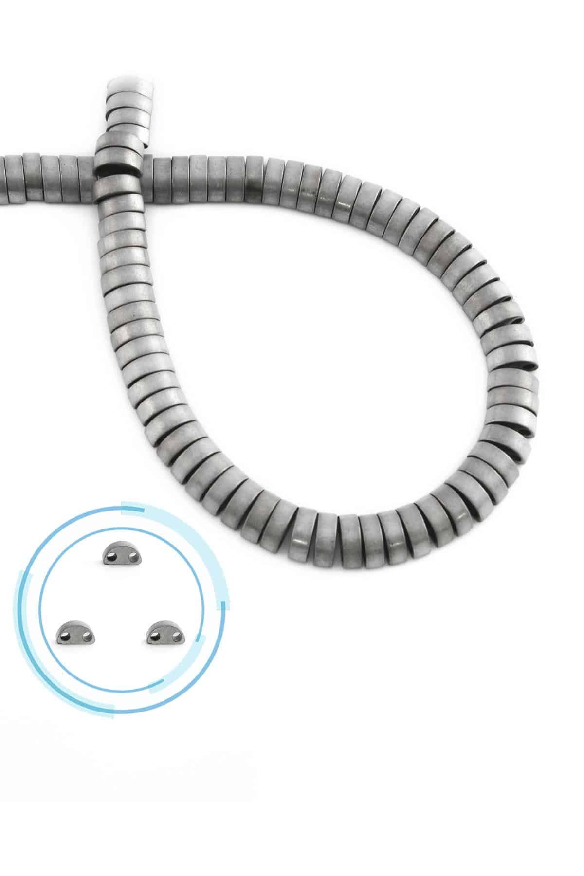 Hematit Doğal Taş Mat Açık Gri Bombeli Kesim Çift Delik 6x2mm Dizi [AA]