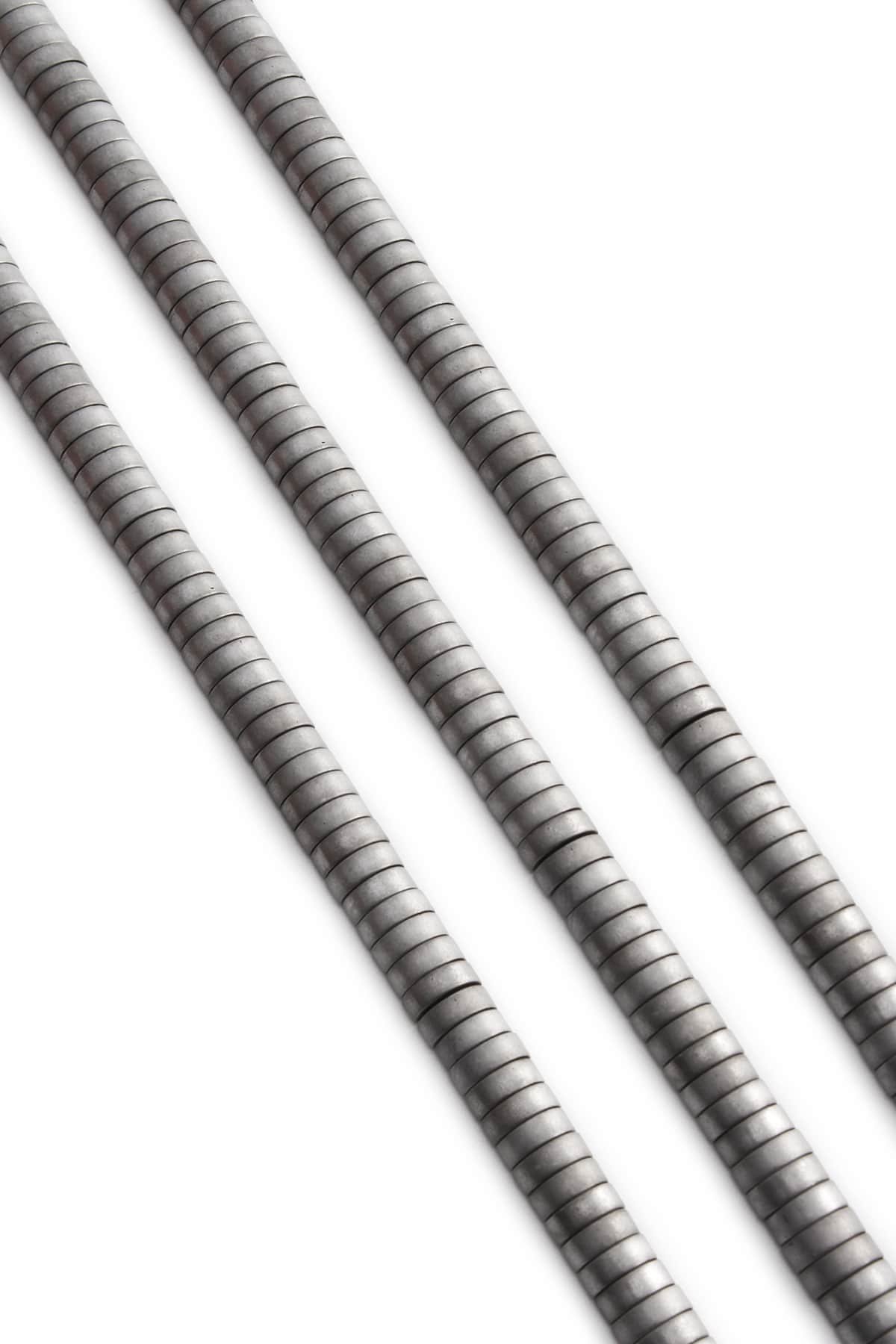 Hematit Doğal Taş Mat Açık Gri Bombeli Kesim Çift Delik 6x2mm Dizi [AA] (5200-0004)