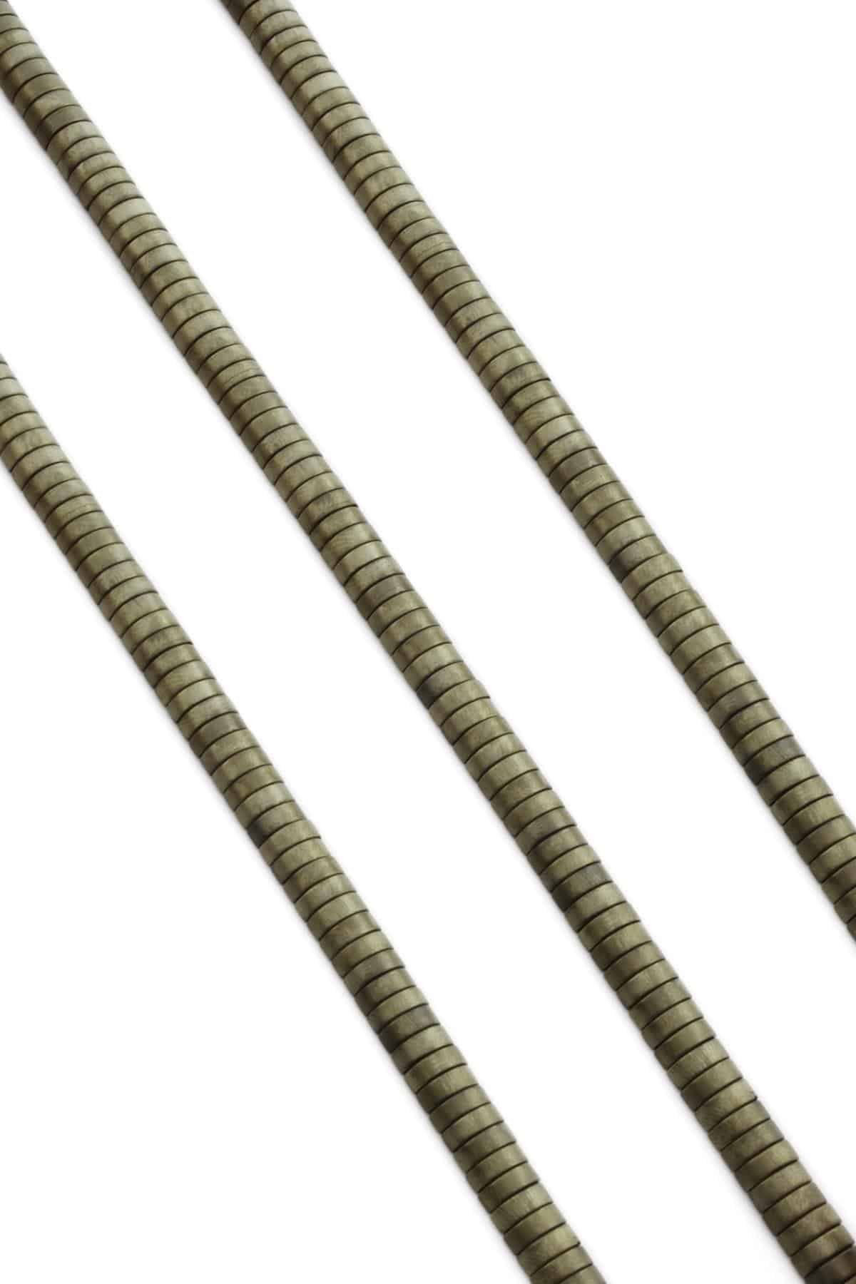 Hematit Doğal Taş Mat Antik Sarı Bombeli Kesim Çift Delik 6x2mm Dizi [AA] (5200-0077)