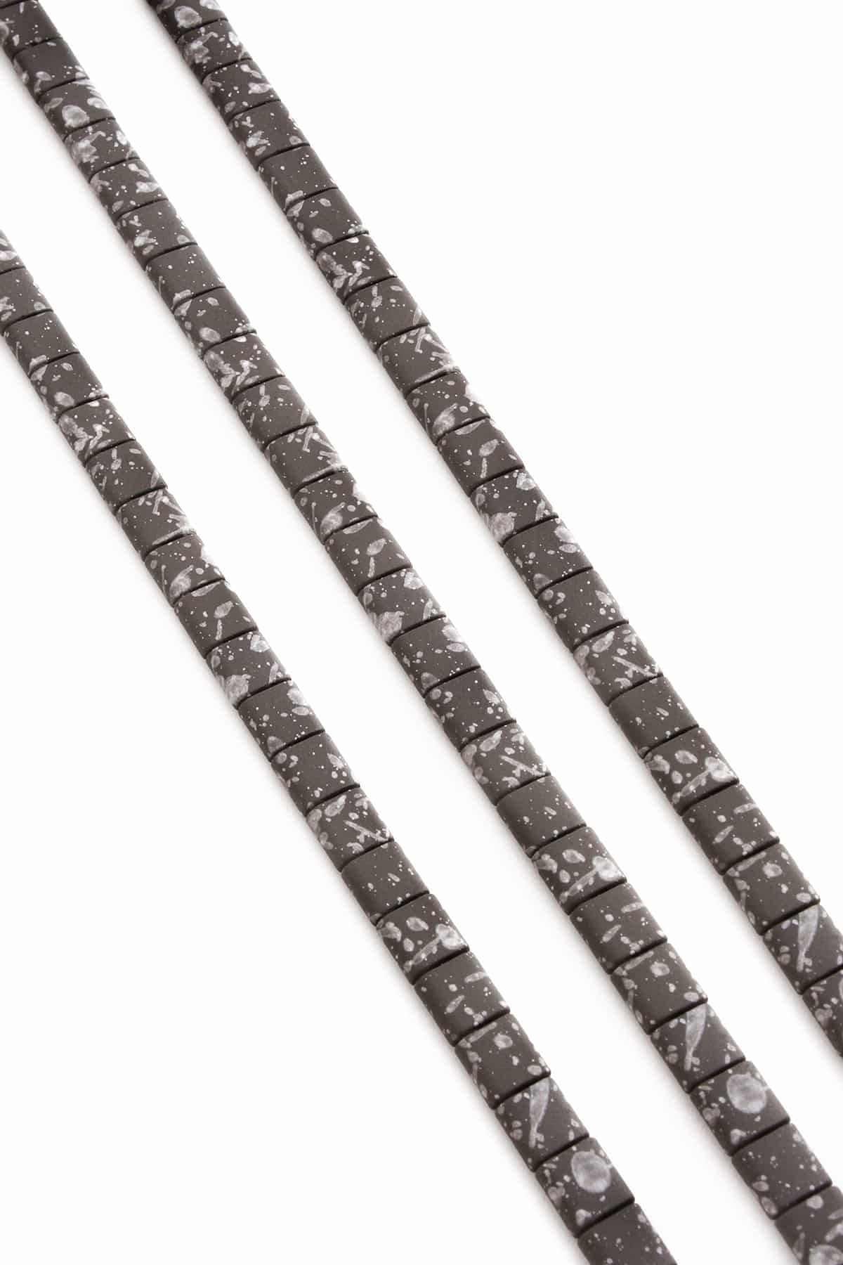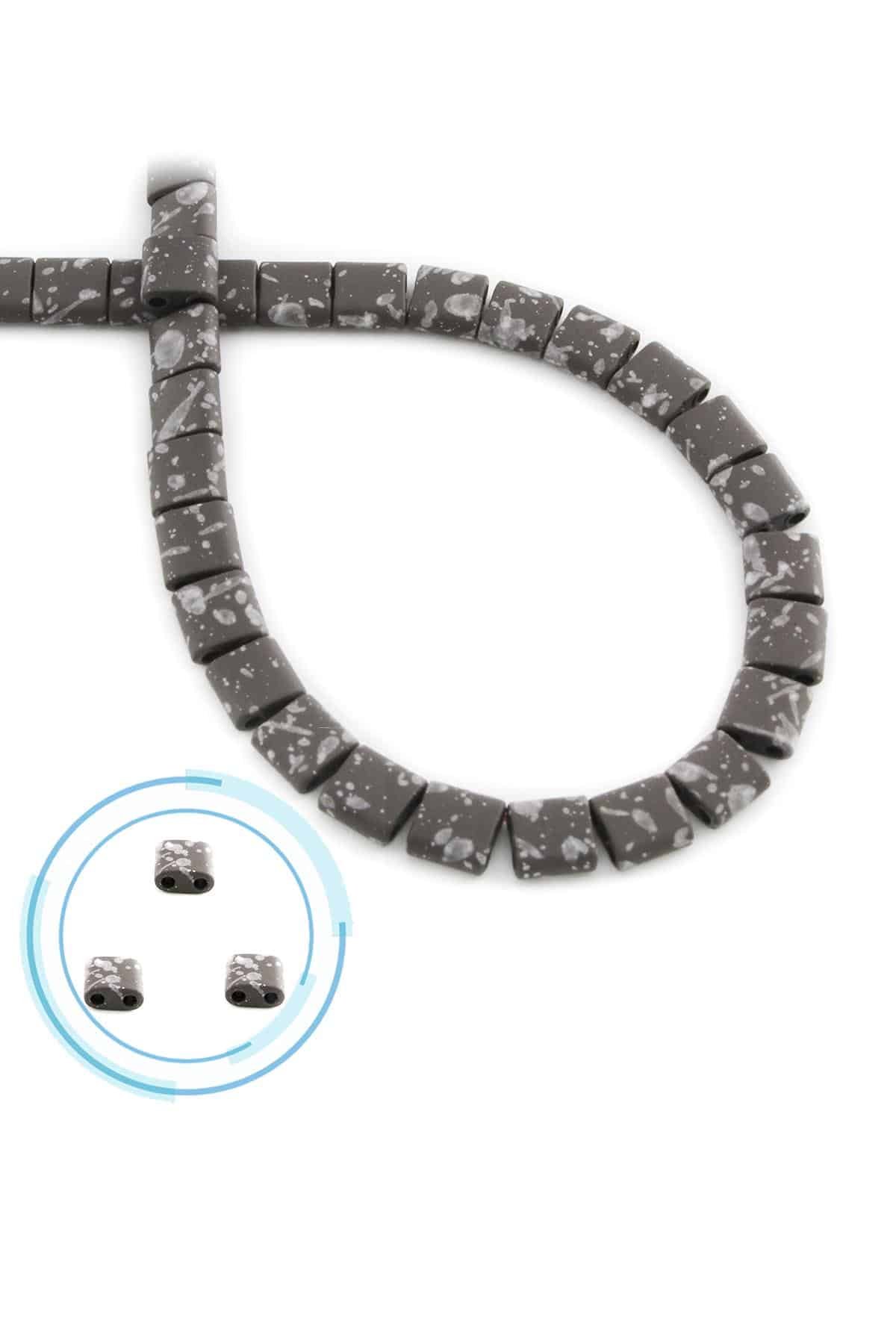 Hematit Doğal Taş Mat Benekli Açık Gri Kare Kesim Çift Delikli 6x6mm Dizi
