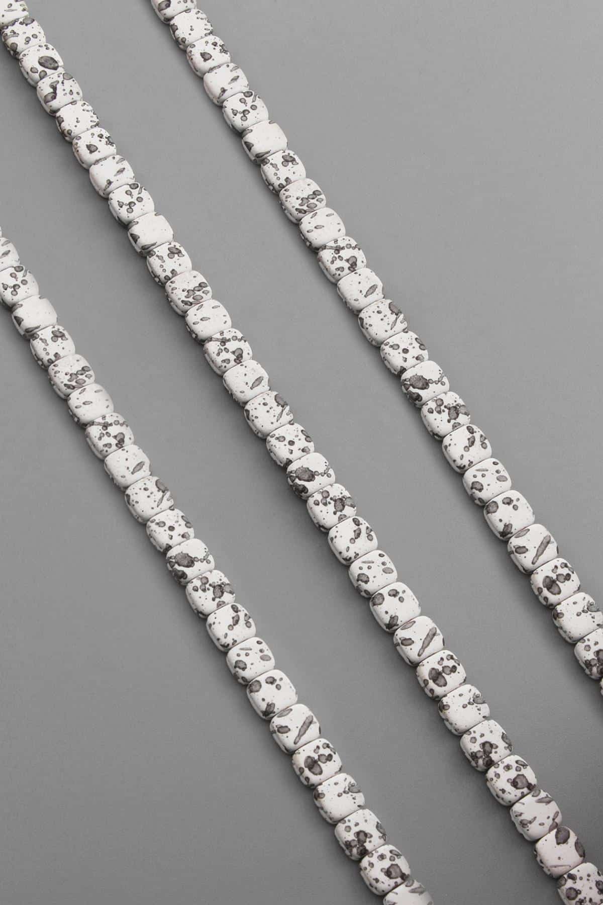 Hematit Doğal Taş Mat Benekli Beyaz Kare Kesim 6x6mm Dizi [AA] (5112-0070)