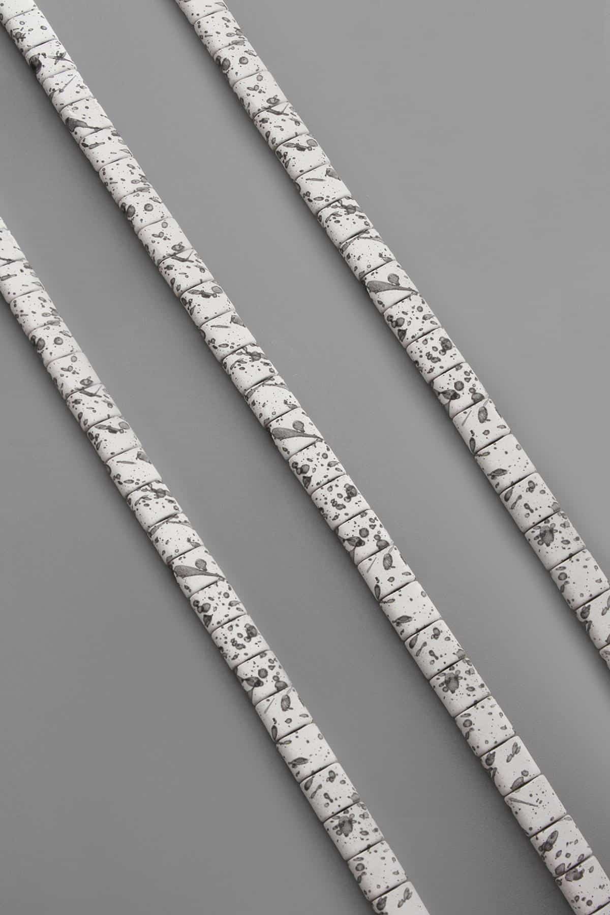 Hematit Doğal Taş Mat Benekli Beyaz Kare Kesim Çift Delik 6x6mm Dizi [AA] (5196-0070)