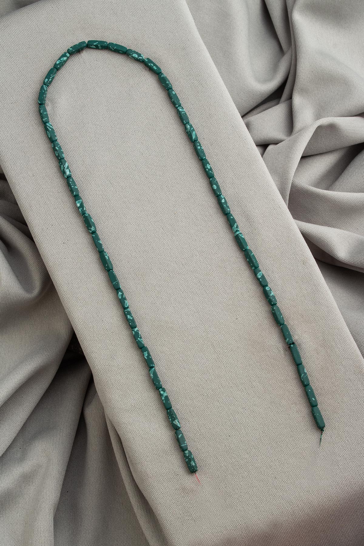 Hematit Doğal Taş Mat Benekli Haki Yeşil Dikdörtgen Kesim 3x9mm Dizi