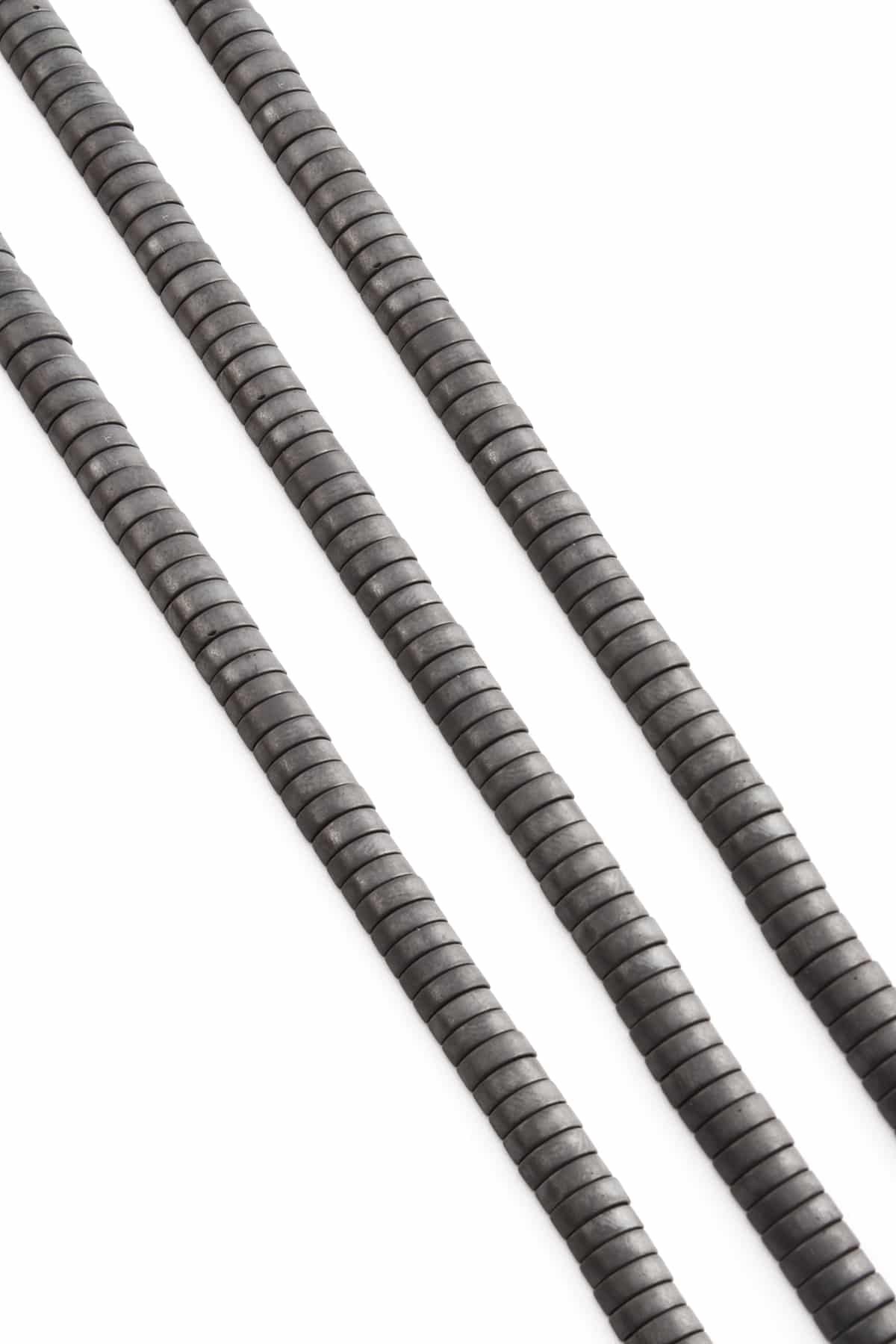 Hematit Doğal Taş Mat Gri Bombeli Kesim Çift Delik 6x2mm Dizi [AA] (5200-0001)