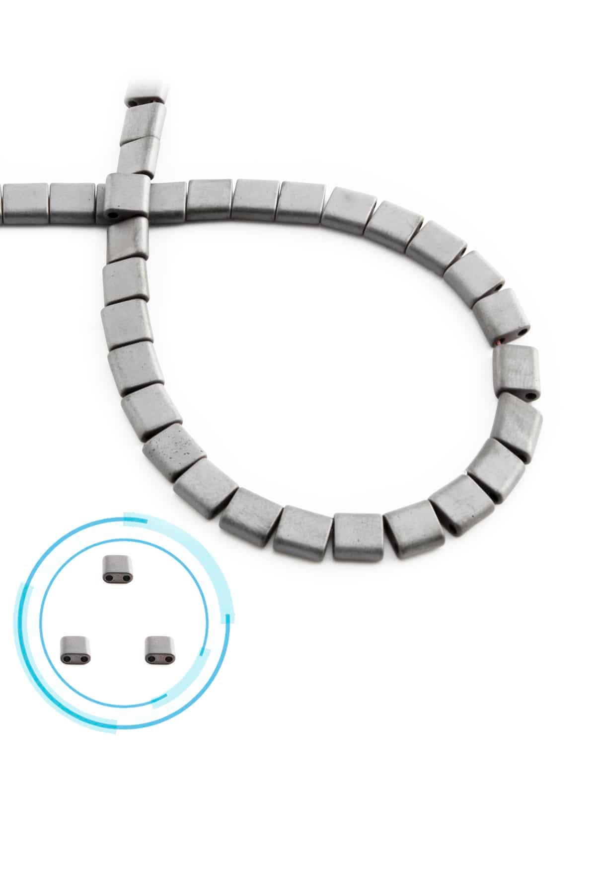 Hematit Doğal Taş Mat Gri Kare Kesim Çift Delik 6x6mm Dizi [AA]