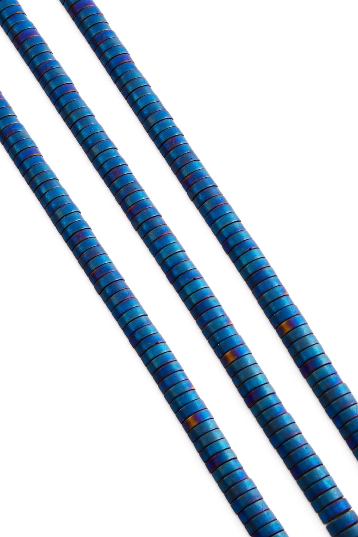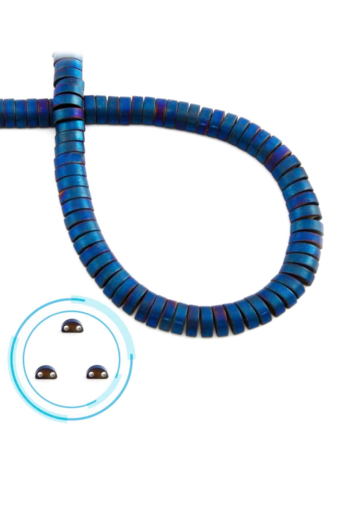 Hematit Doğal Taş Mat Mavi Bombeli Kesim Çift Delikli 6x2mm Dizi (5200-0008)