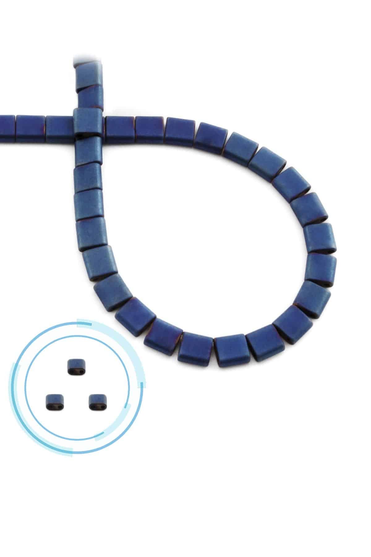 Hematit Doğal Taş Mat Mavi Kare Kesim Çift Delik 6x6mm Dizi [AA] (5196-0008)