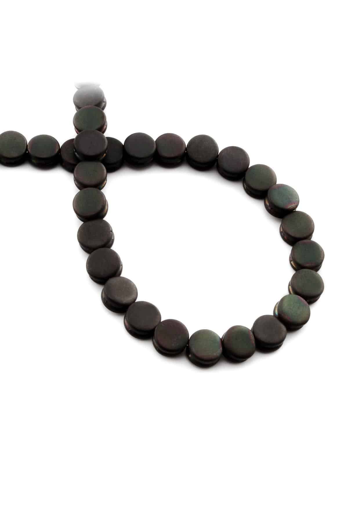 Hematit Doğal Taş Mat Siyah Daire Kesim 8mm Dizi