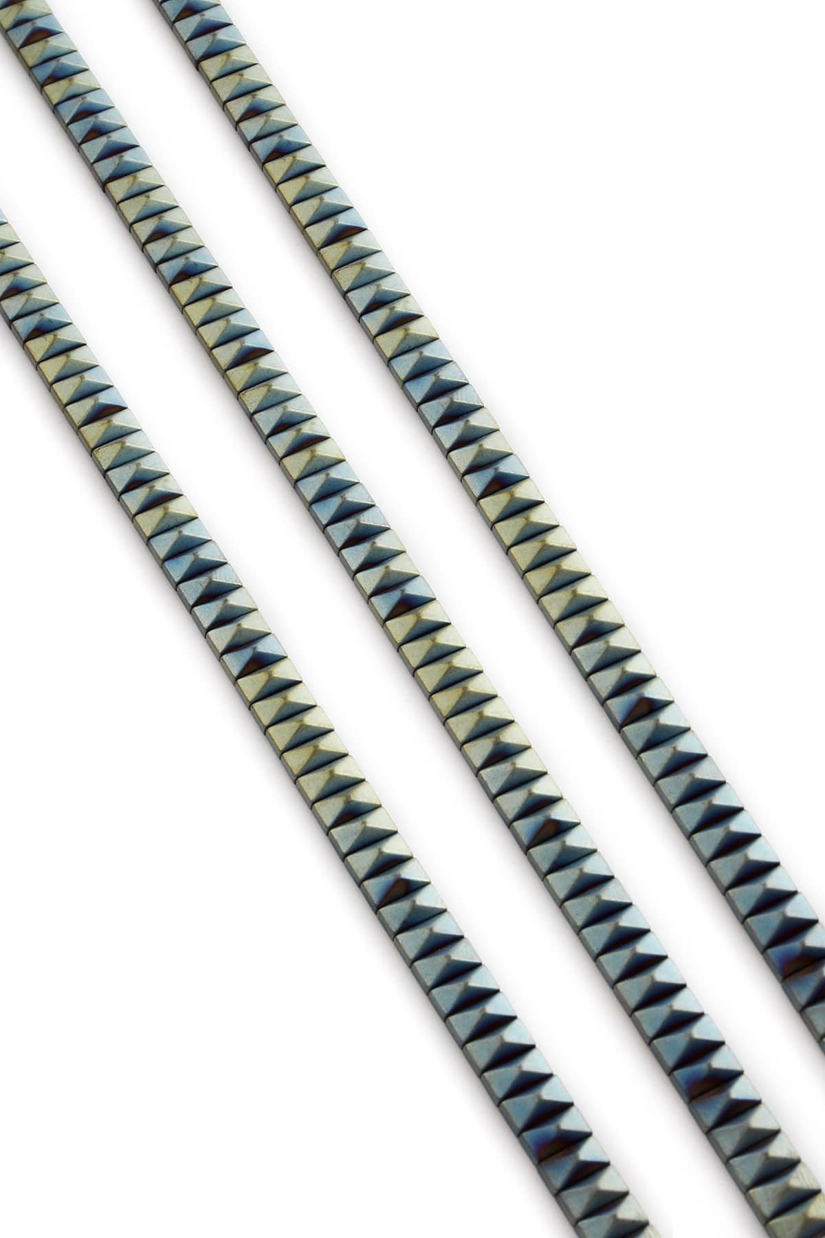 Hematit Doğal Taş Mat Yeşil Piramit Kesim Çift Delikli 6x3mm Dizi