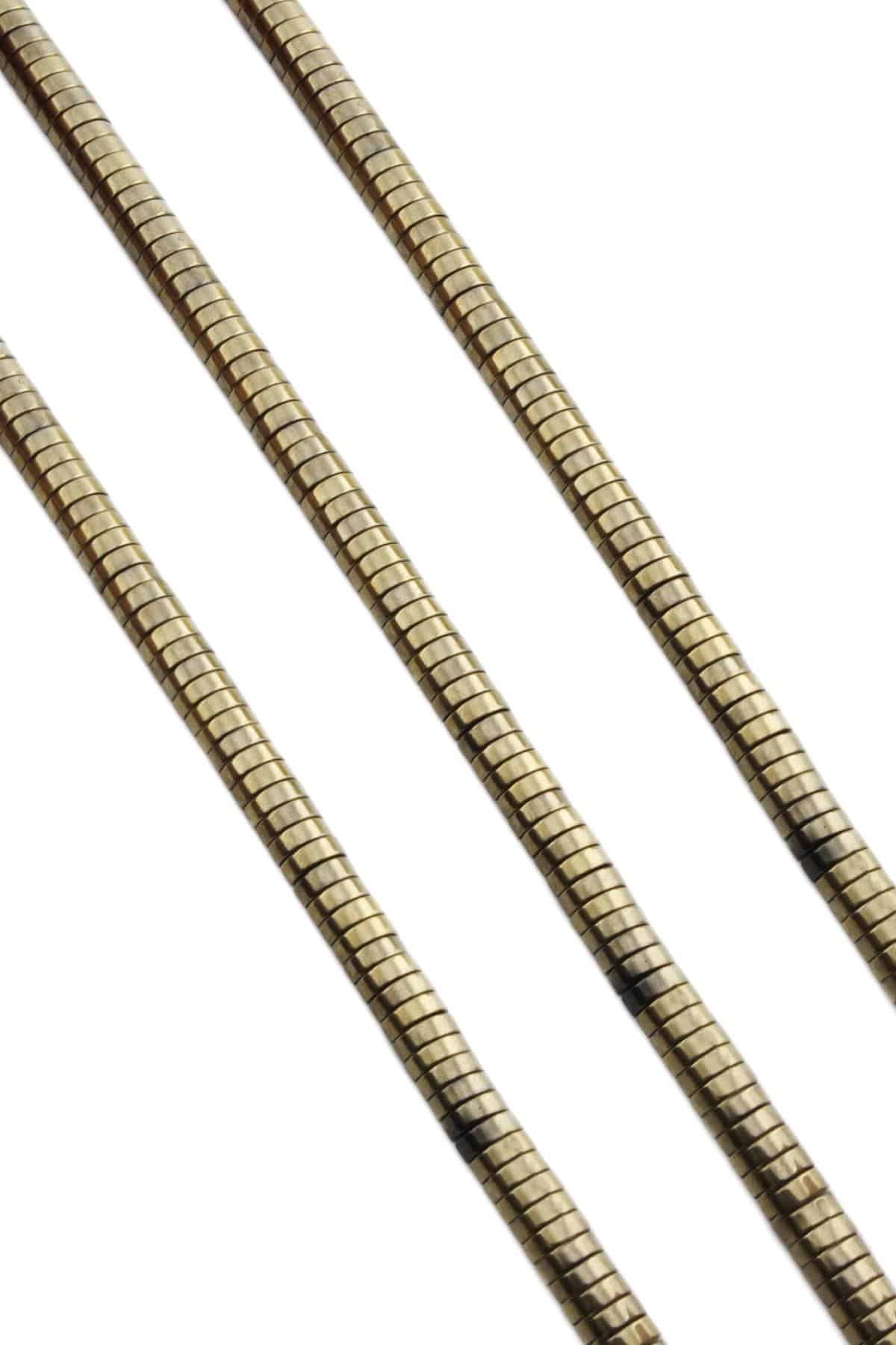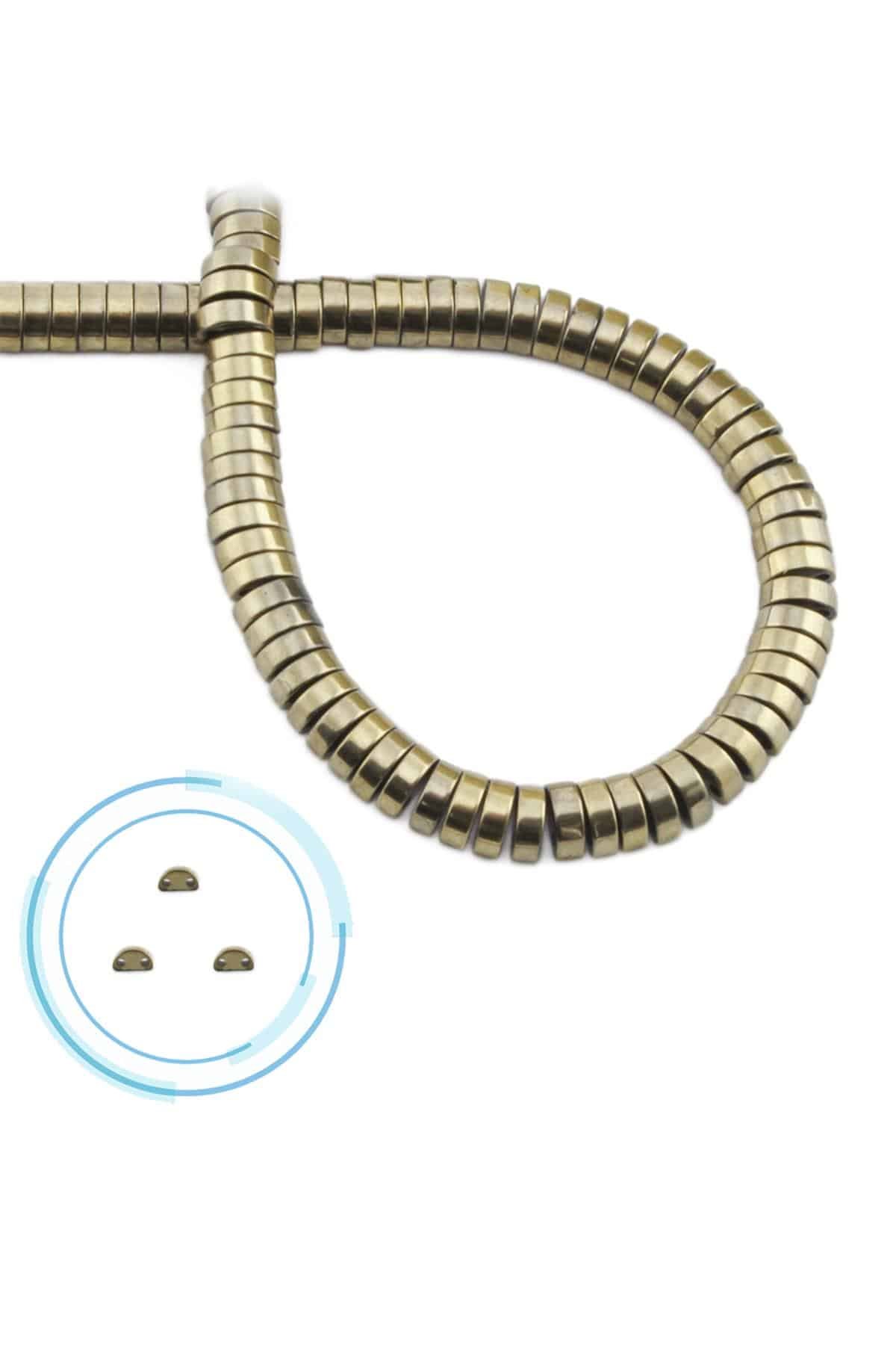 Hematit Doğal Taş Parlak Antik Sarı Bombeli Kesim Çift Delikli 6x2mm Dizi (5200-0016)