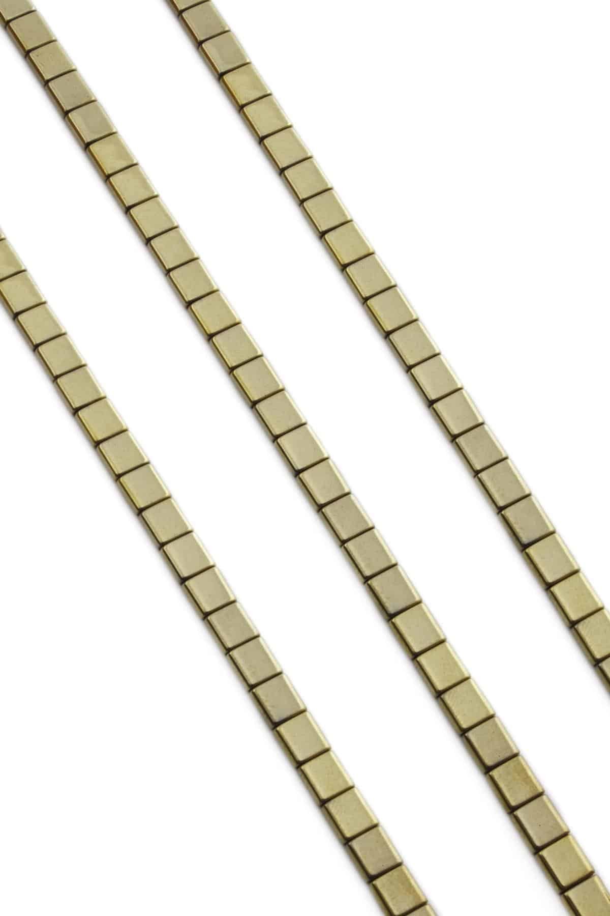 Hematit Doğal Taş Parlak Antik Sarı Kare Kesim Çift Delikli 6x6mm Dizi