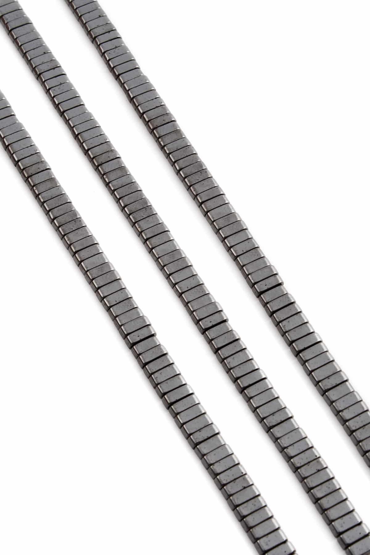 Hematit Doğal Taş Parlak Füme Yassı Dikdörtgen Kesim 6x2mm Dizi (5198-0002)