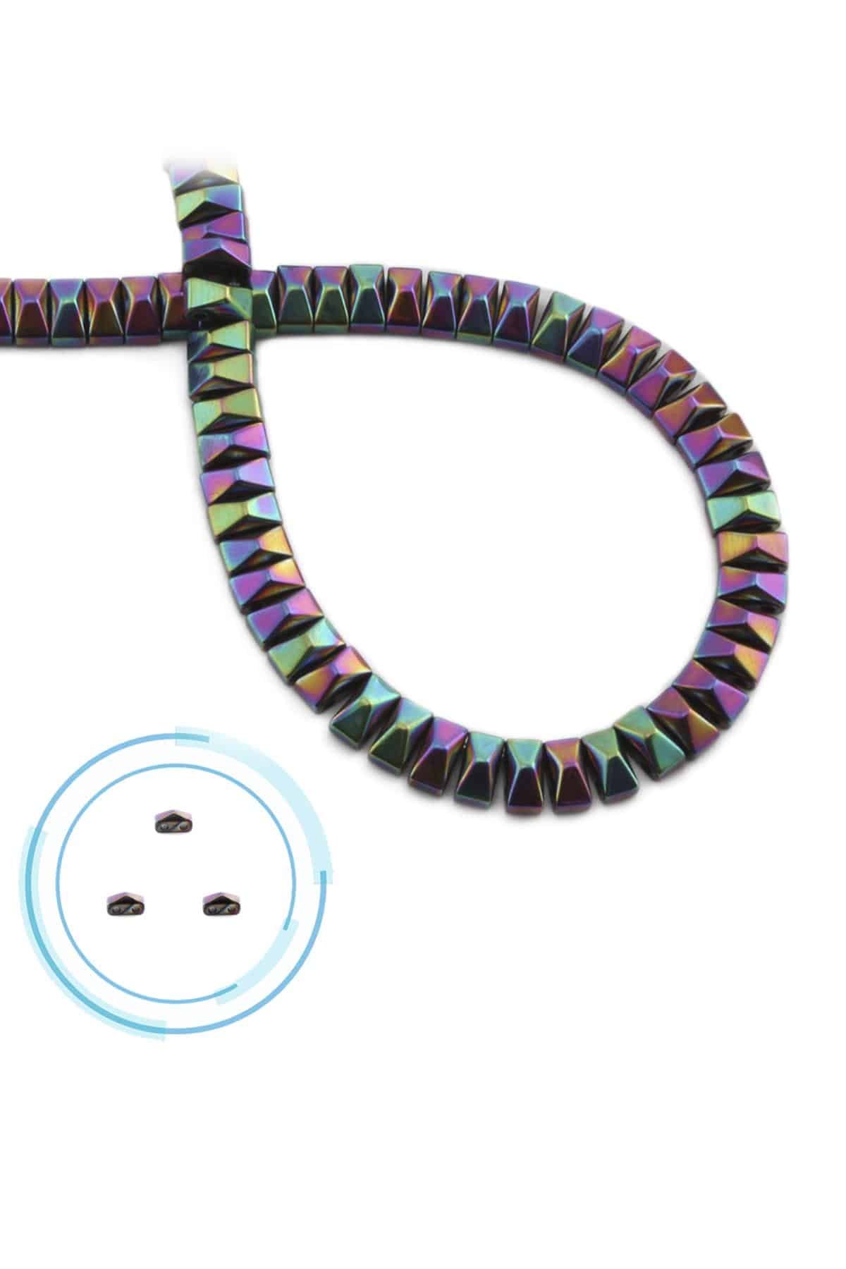 Hematit Doğal Taş Parlak Gökkuşağı Piramit Kesim Çift Delik 6x3mm Dizi [AA] (5202-0021)