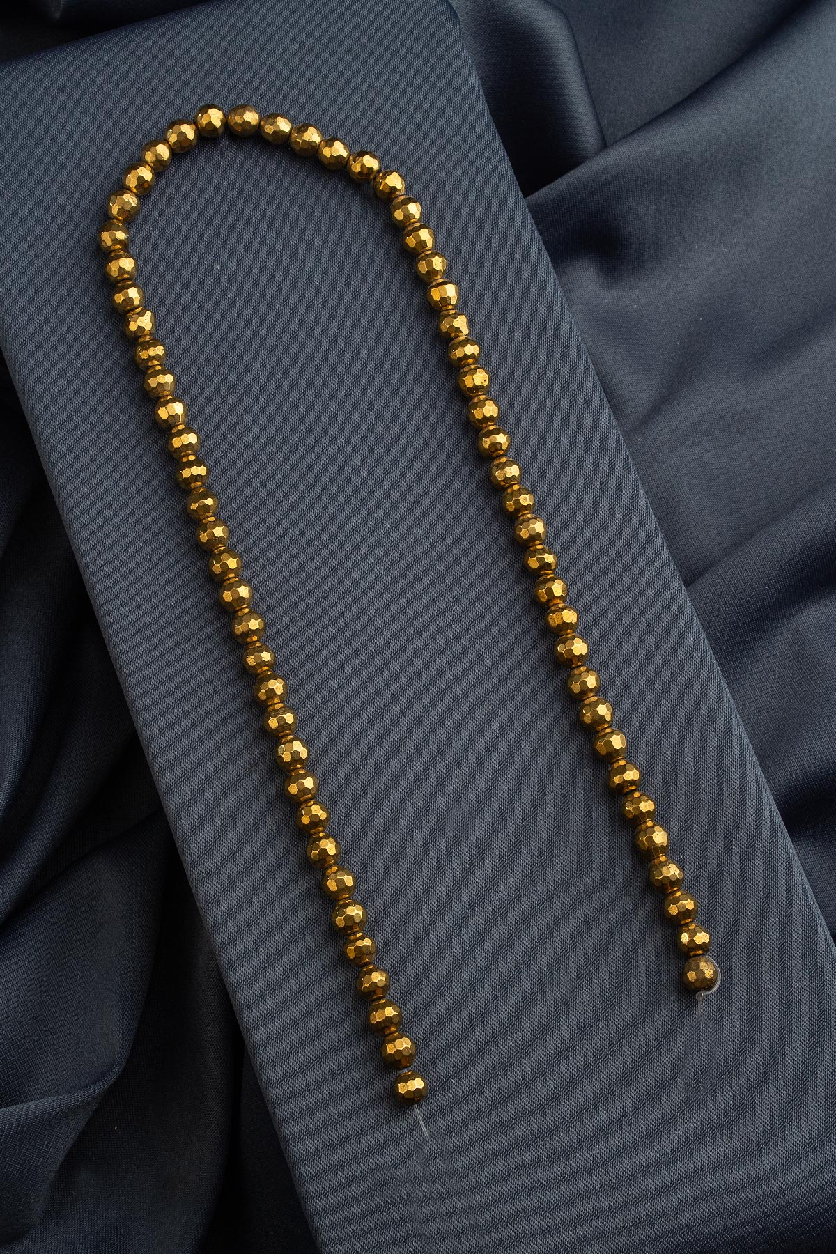 Hematit Doğal Taş Parlak Gold Küre Faset Kesim 6mm Dizi [AA]