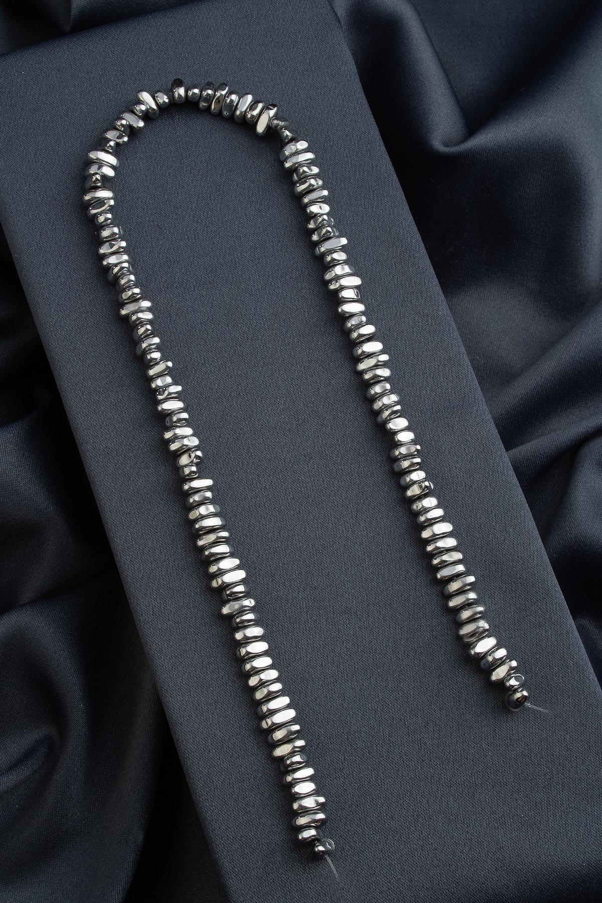 Hematit Doğal Taş Parlak Gümüş Amorf Kesim 6x7mm Dizi