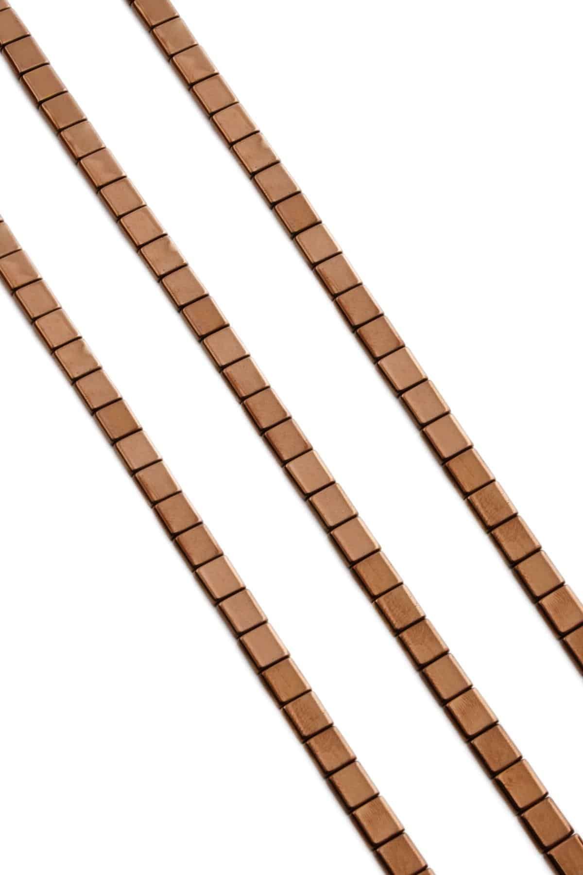 Hematit Doğal Taş Parlak Kahverengi Kare Kesim Çift Delik 6x6mm Dizi [AA]