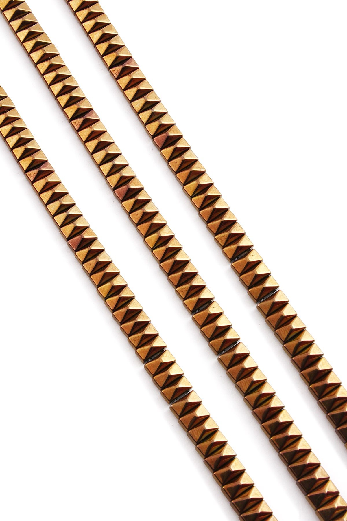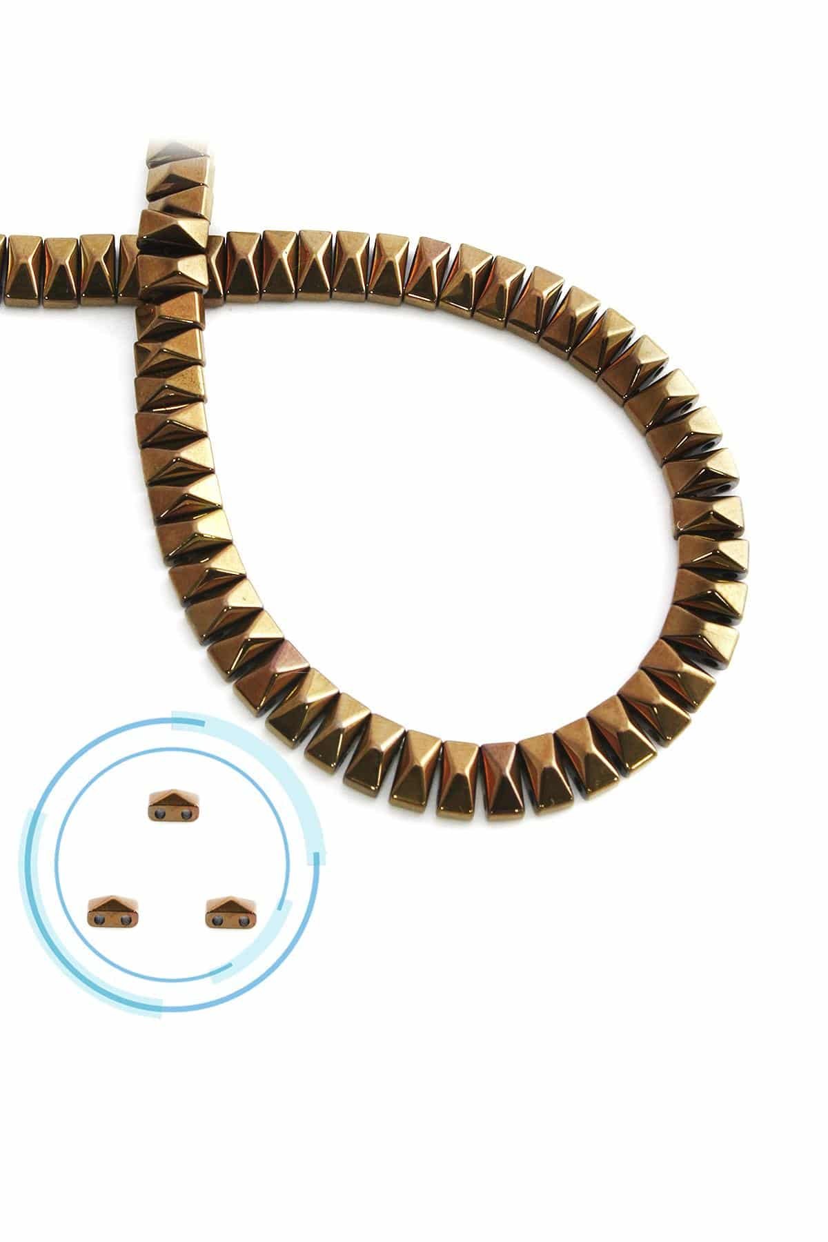 Hematit Doğal Taş Parlak Kahverengi Piramit Kesim Çift Delik 6x3mm Dizi [AA]