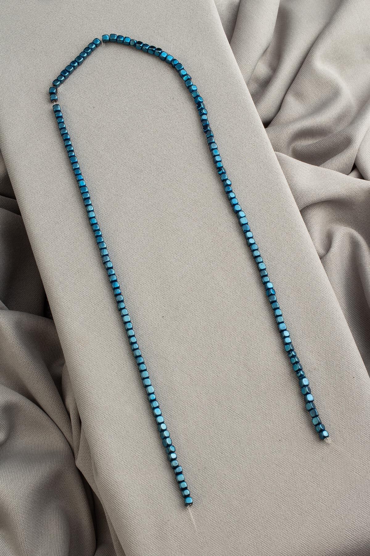 Hematit Doğal Taş Parlak Mavi Kare Kesim 3x3mm Dizi [AA]