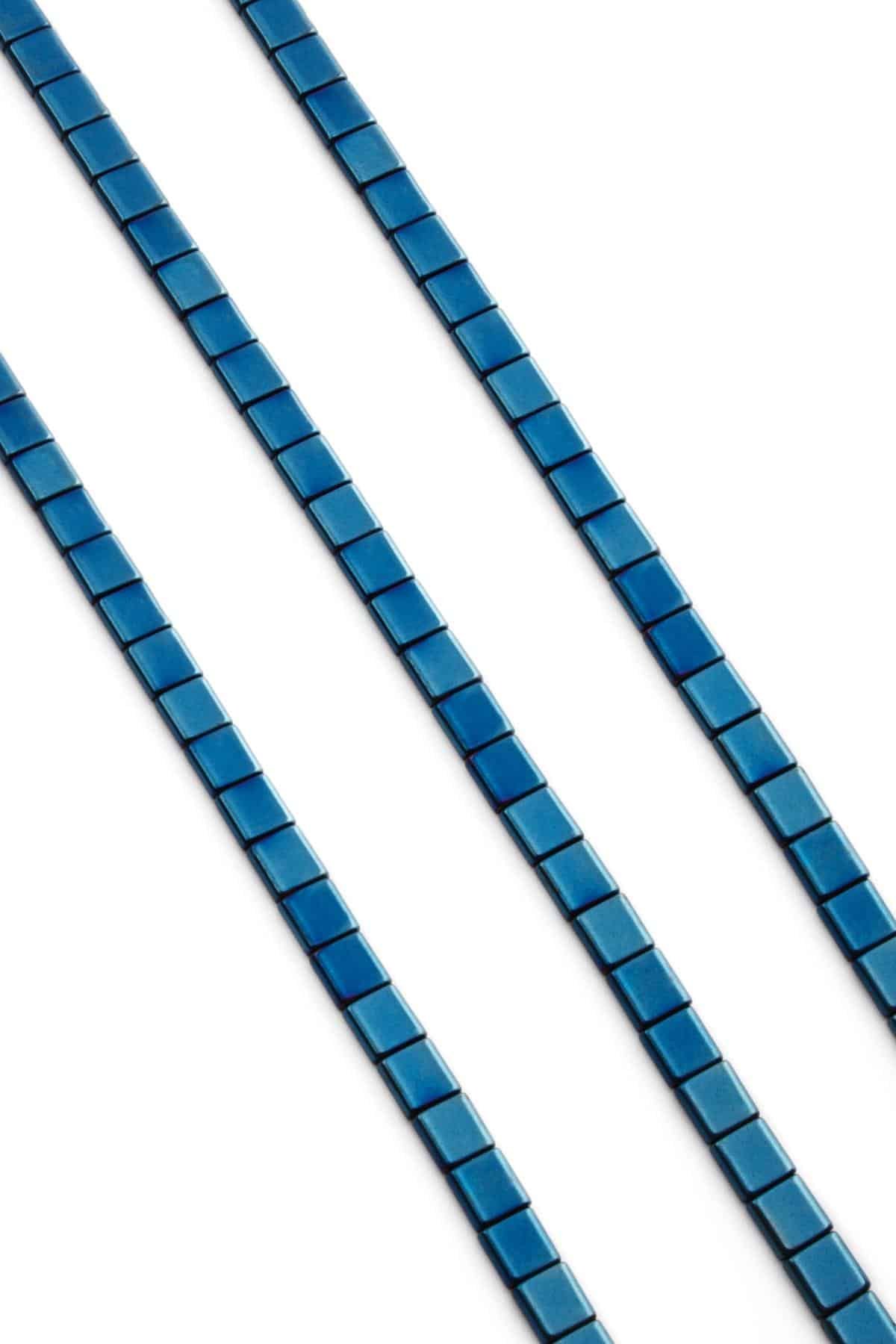 Hematit Doğal Taş Parlak Mavi Kare Kesim Çift Delik 6x6mm Dizi [AA]