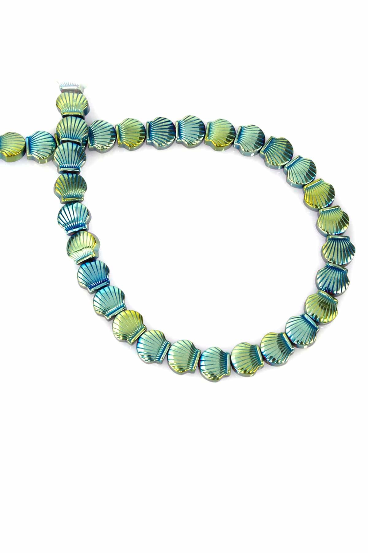 Hematit Doğal Taş Parlak Yeşil Deniz Tarağı Kesim 8mm Dizi [AA] (5360-0025)
