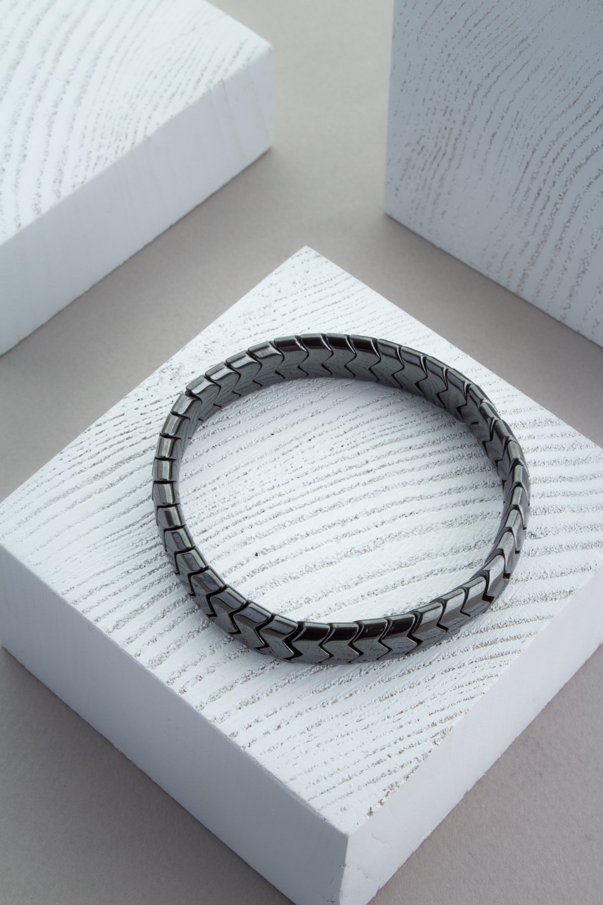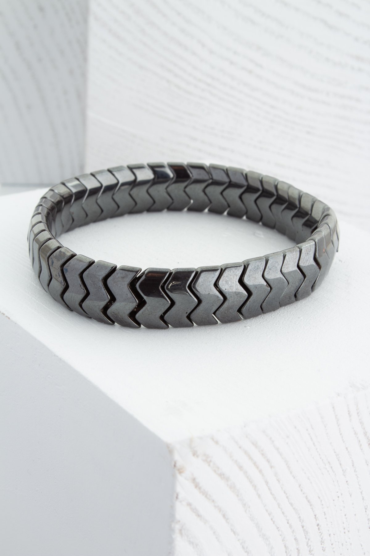 Hematit Doğal Taş Yarasa Kesim Bileklik (BLKMSN-0220)