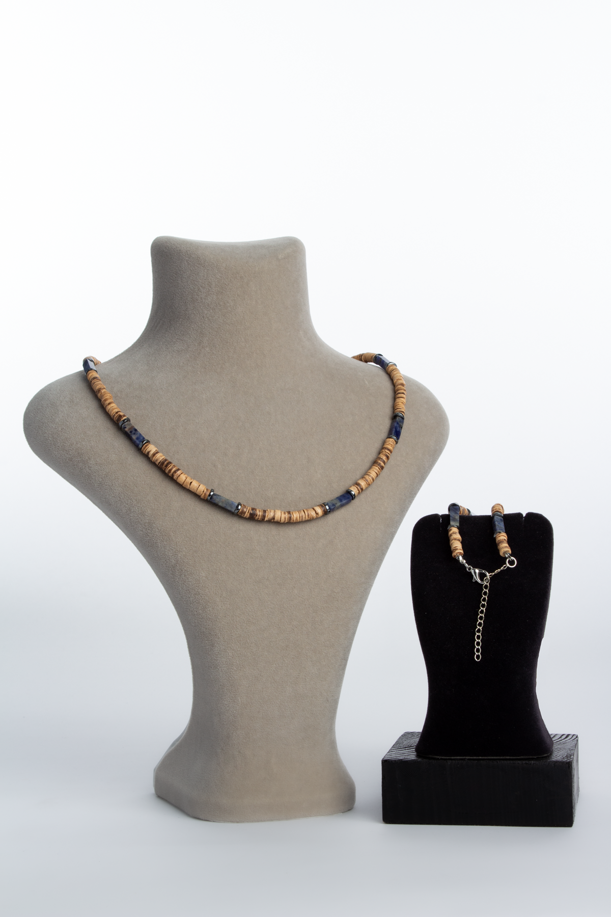 Hindistan Cevizi Ağacı - Sodalit Doğal Taş Dikdörtgen Kesim Zincir Kapamalı Kolye