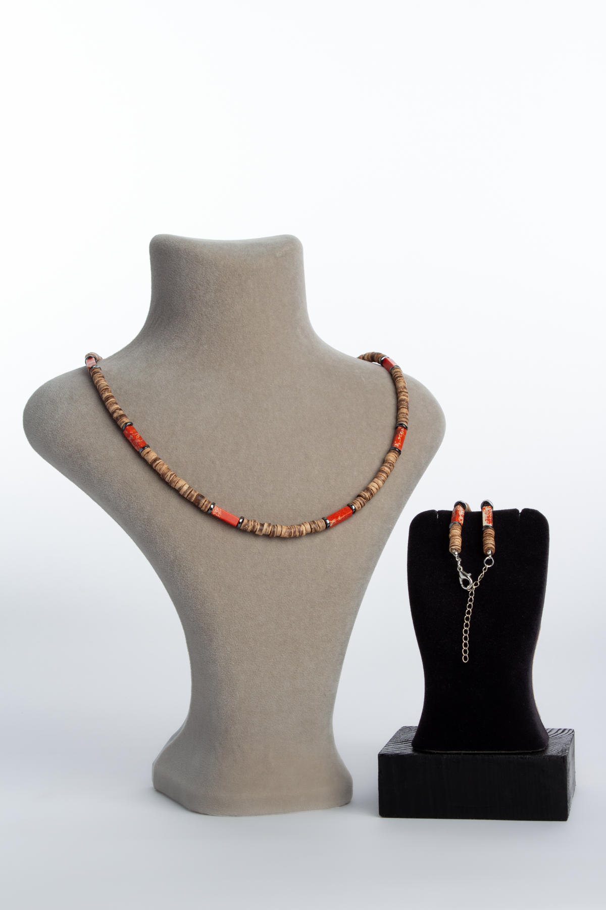 Hindistan Cevizi Ağacı - Varisit Doğal Taş Dikdörtgen Kesim Zincir Kapamalı Kolye