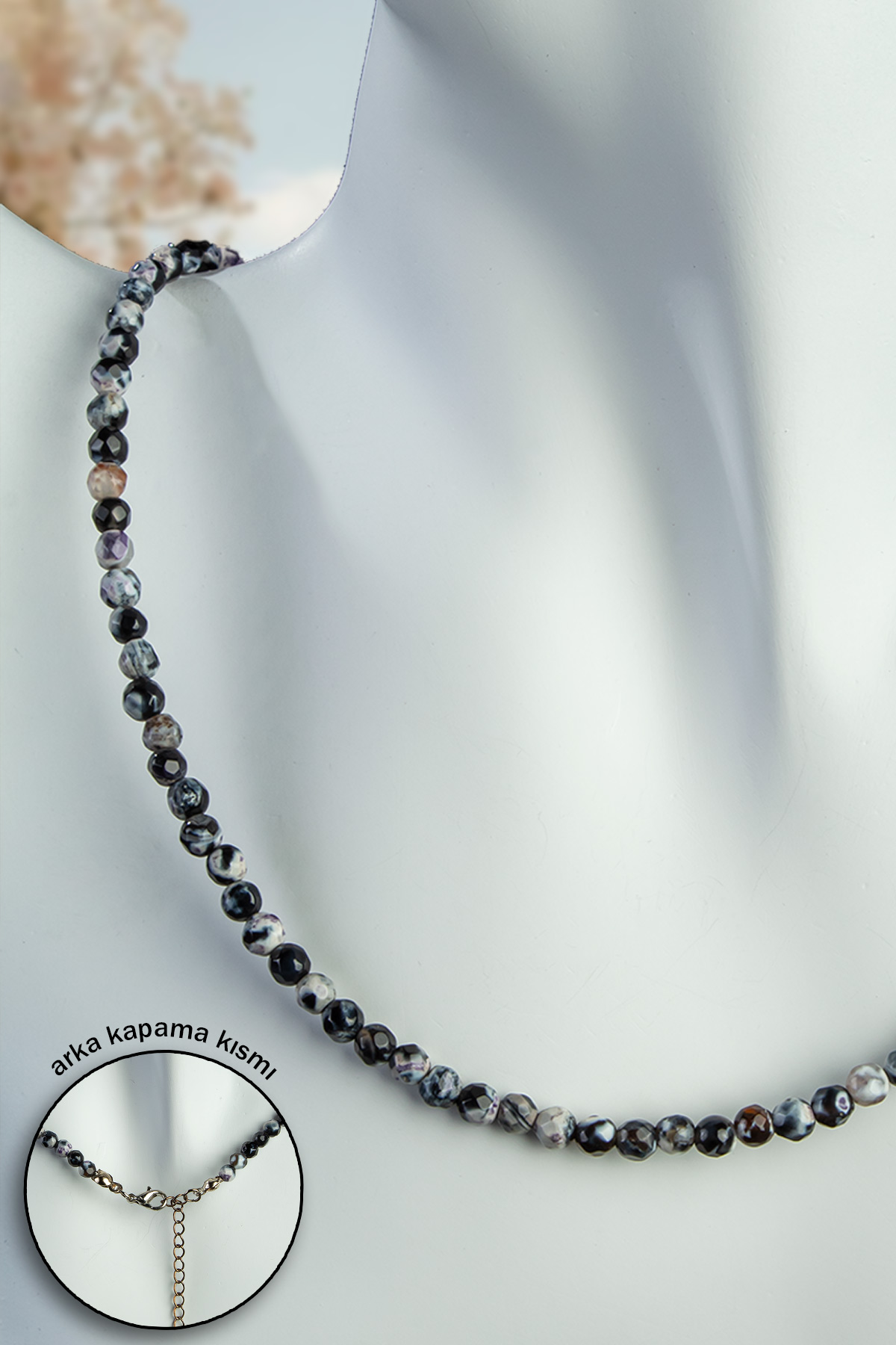 Pat Pat Akik Doğal Taş Mor Faset Küre Kesim 4mm Kolye (KLYDGL-0066)