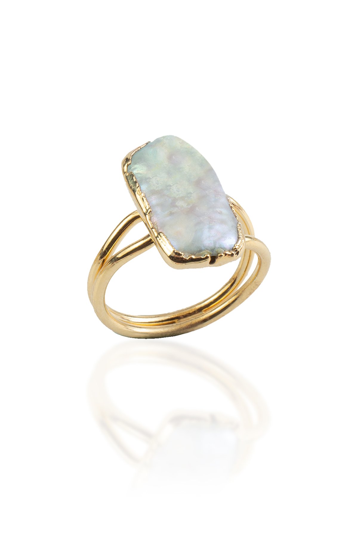 İnci Doğal Taş Dikdörtgen Kesim Pirinç Üzeri Altın Kaplama Ayarlanabilir Yüzük