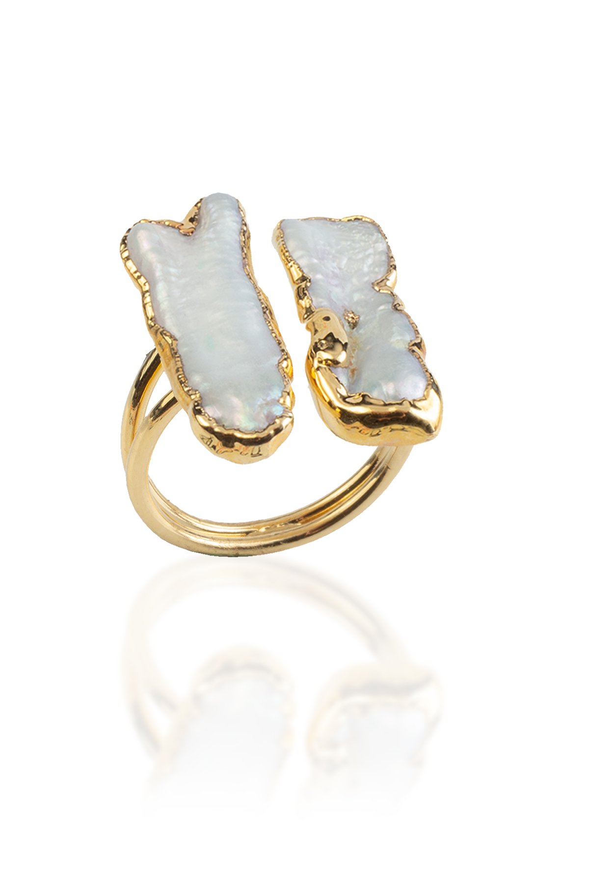 İnci Doğal Taş Ham Kütle Kesim Pirinç Üzeri Altın Kaplama Ayarlanabilir Yüzük