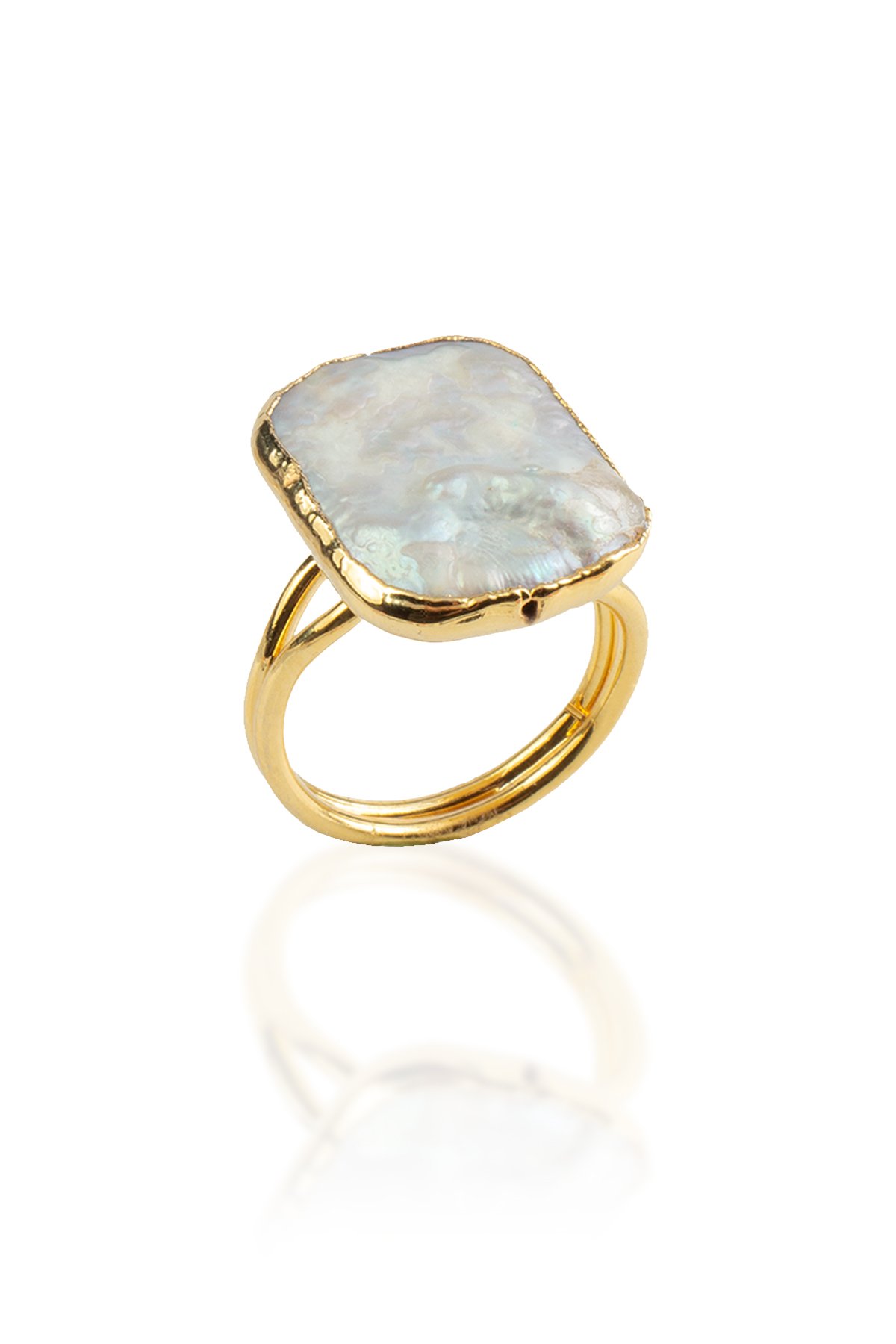İnci Doğal Taş Kare Kesim Pirinç Üzeri Altın Kaplama Ayarlanabilir Yüzük