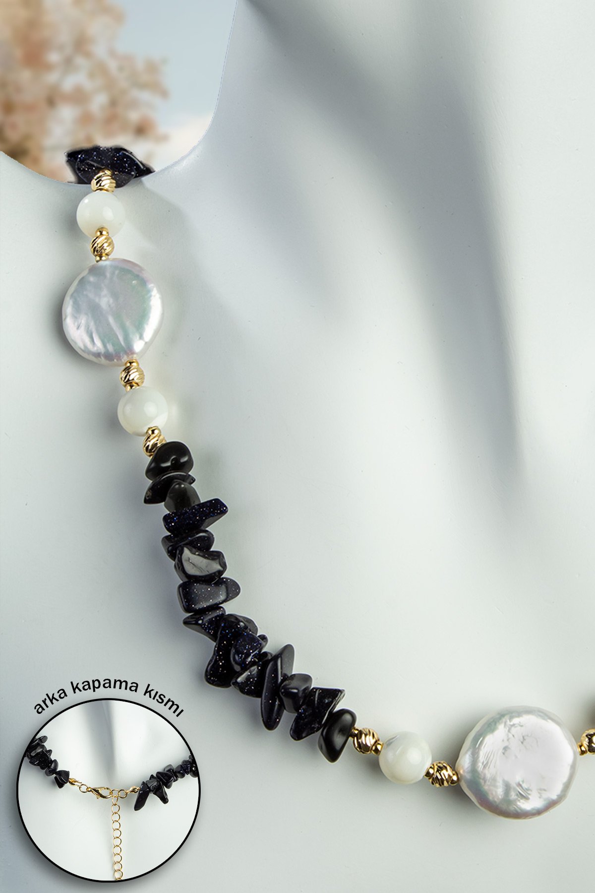 İnci - Yıldız Taşı Doğal Kırık Taş Zincir Kapamalı Kolye