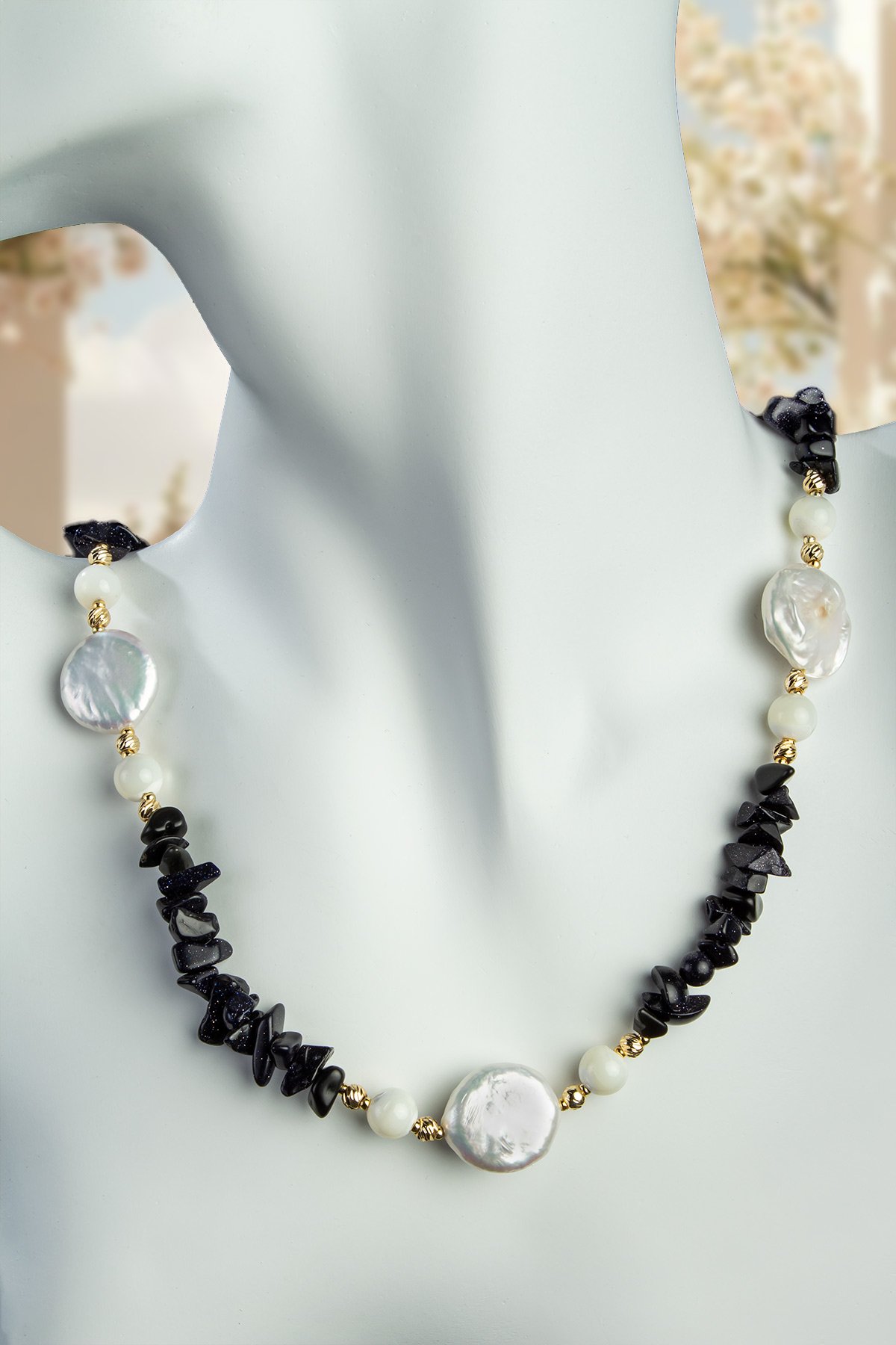 İnci - Yıldız Taşı Doğal Kırık Taş Zincir Kapamalı Kolye (KLYDGL-0199)