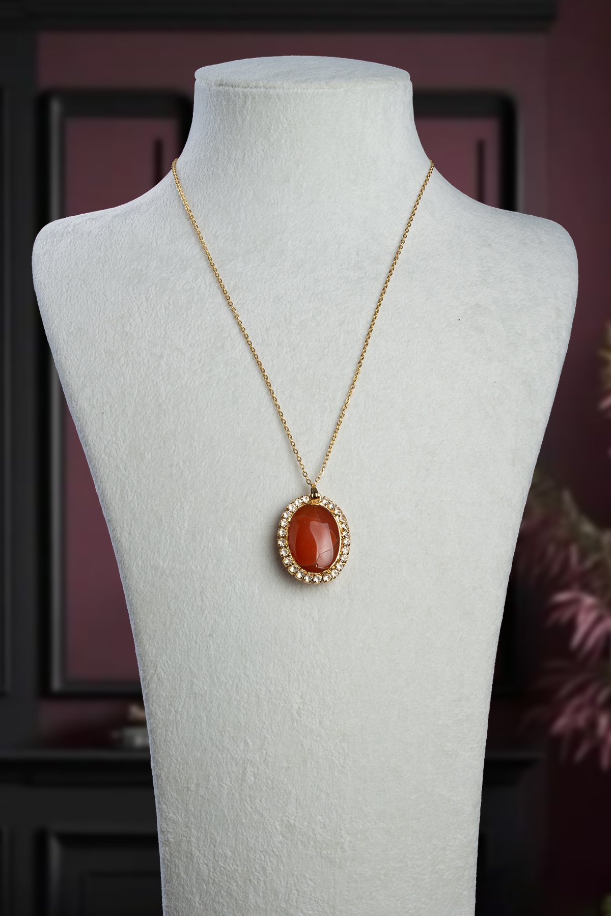 Jasper Doğal Taş Elips Kesim Kolye (KLYDGL-0655)