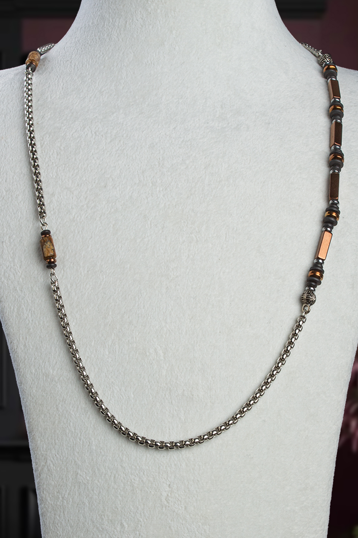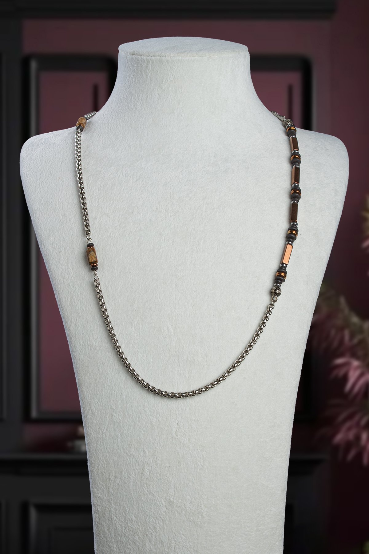Jasper-Hematit Doğal Taş Dikdörtgen Kesim Zincir Erkek Kolye
