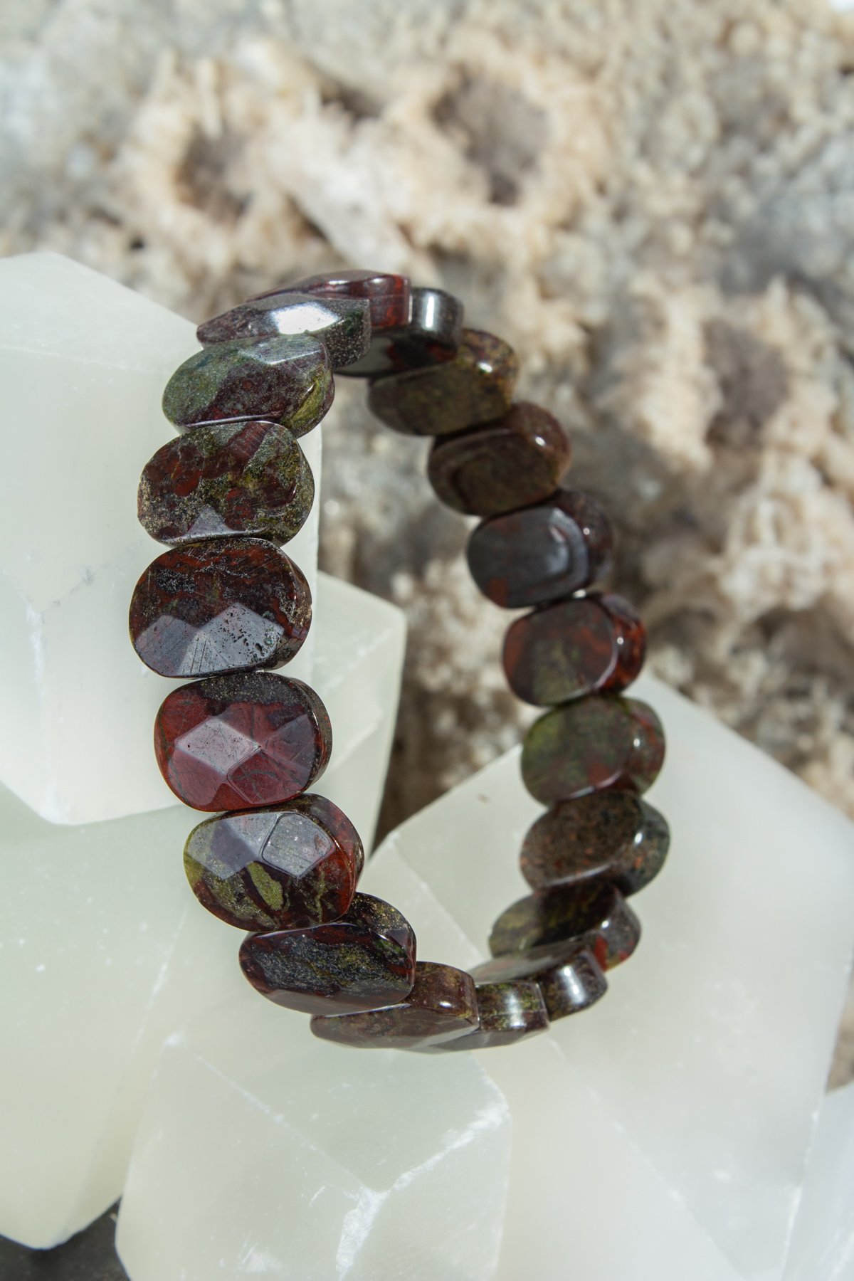 Kan Taşı, yeşil zemin üzerinde kırmızı beneklerle bilinen özel bir jasper türüdür. Antik çağlardan bu yana güç ve dayanıklılık sembolü olarak taşınmıştır. Fiziksel enerjiyi artırdığı ve bağışıklığı desteklediği düşünülür. Ayrıca savaşçıların cesaret kazanması için kullandığı taşlardan biridir.