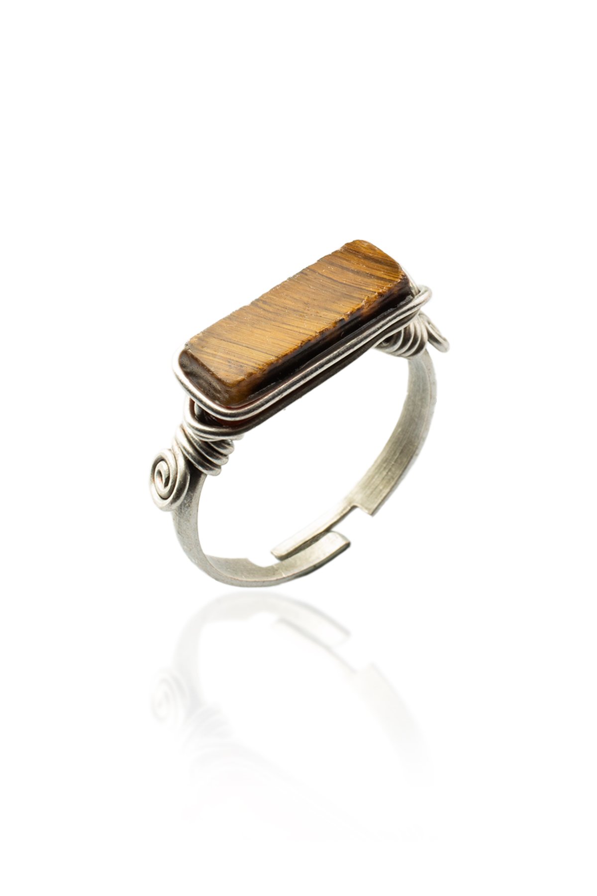 Kaplan Gözü Doğal Taş Çelik Dikdörtgen Kesim Ayarlanabilir Yüzük