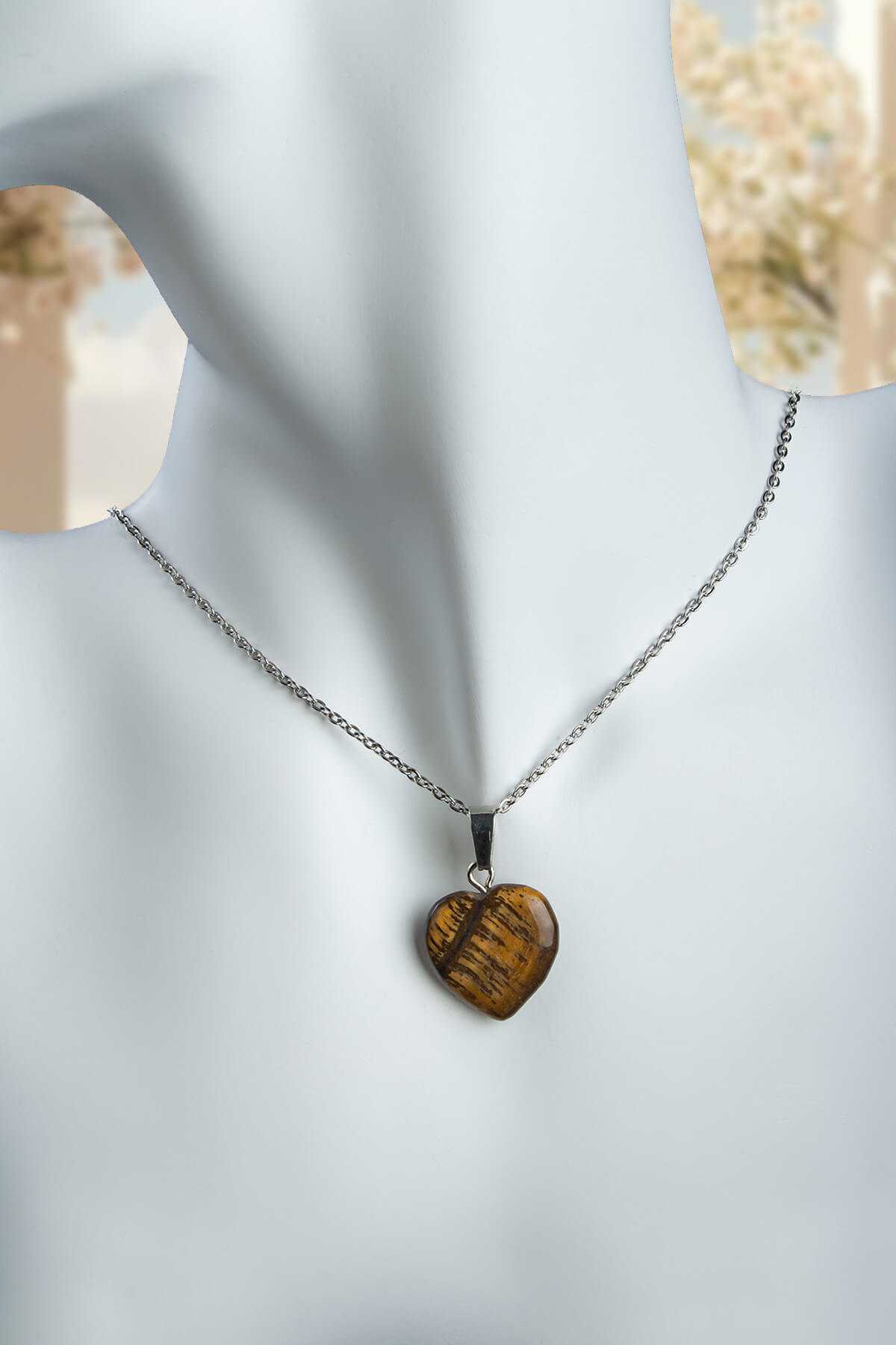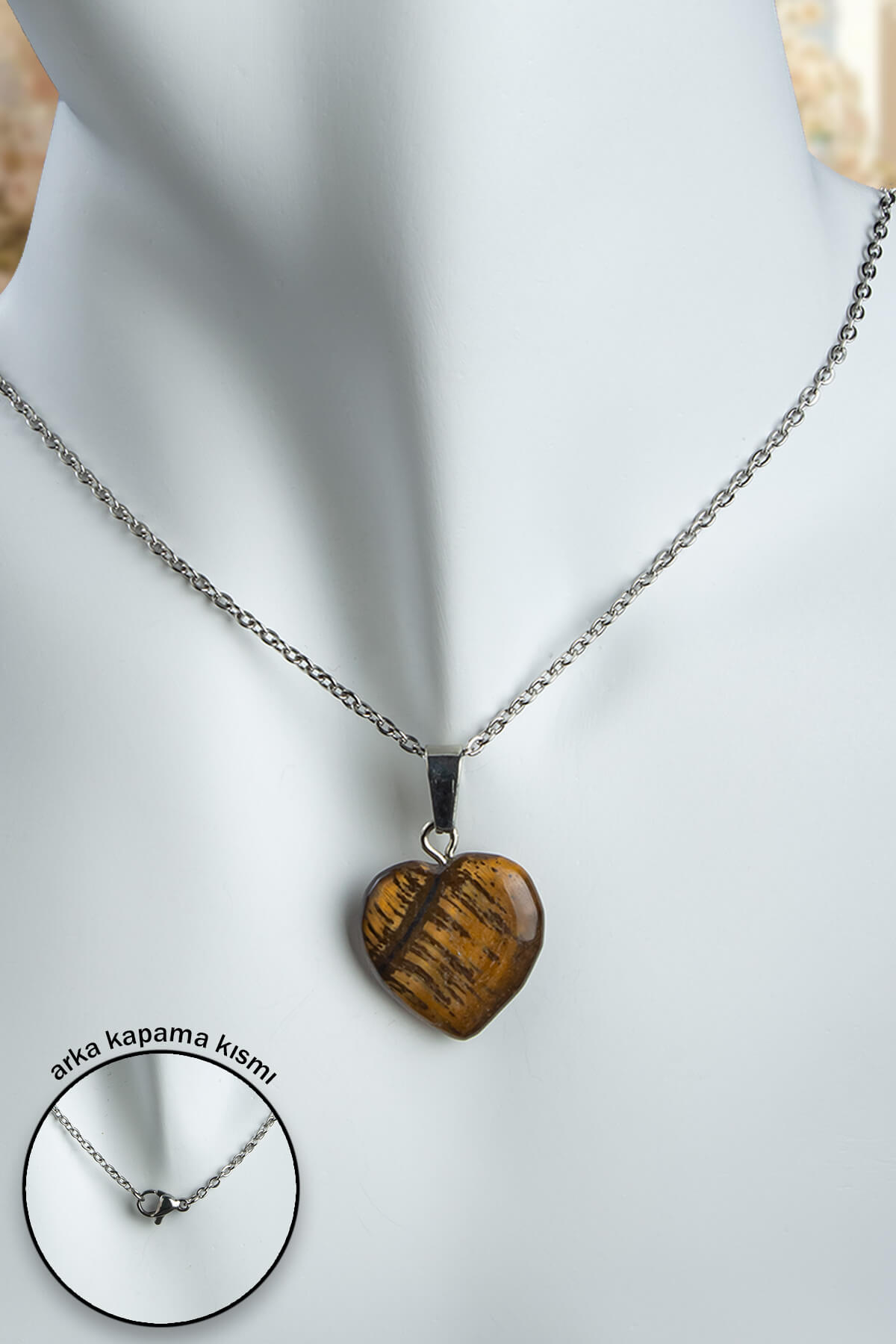 Kaplan Gözü Doğal Taş Kalp Kesim Zincir Kapamalı Kolye (KLYDGL-0213)