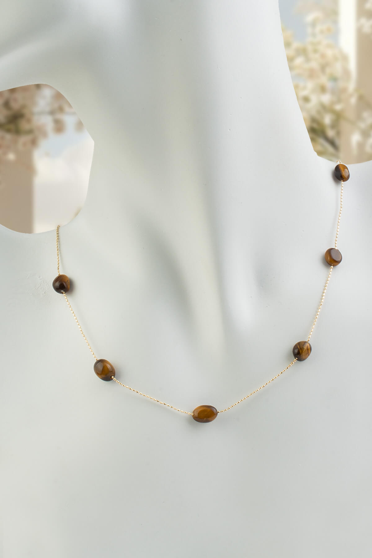 Kaplan Gözü Doğal Taş Tımbıl Kesim Taş Yapıştırma Kolye (KLYDGL-0495)