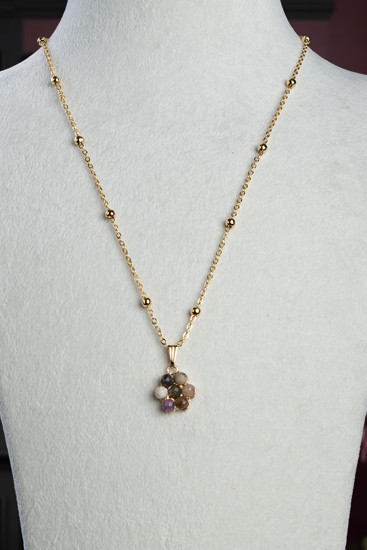 Karışık Doğal Taş Çiçek Kesim Kolye