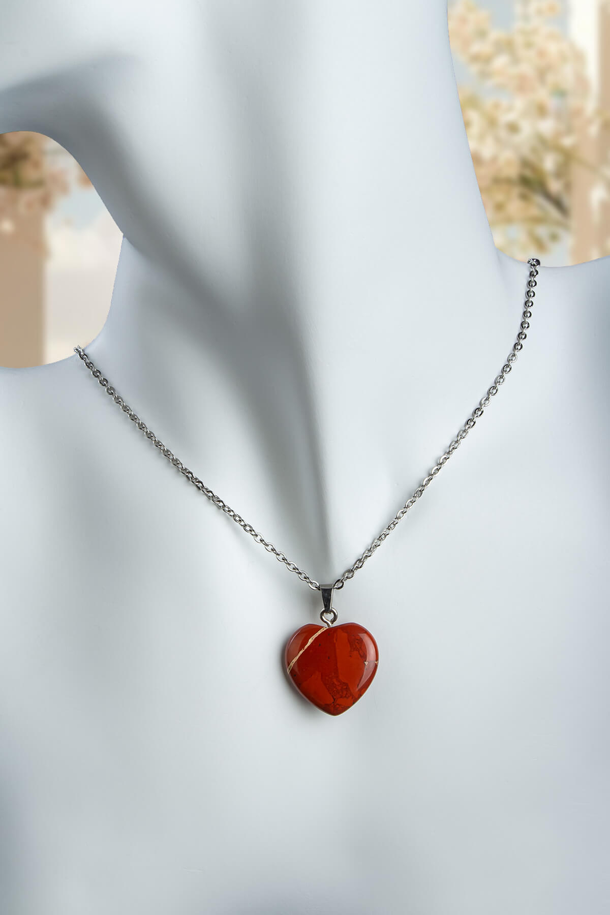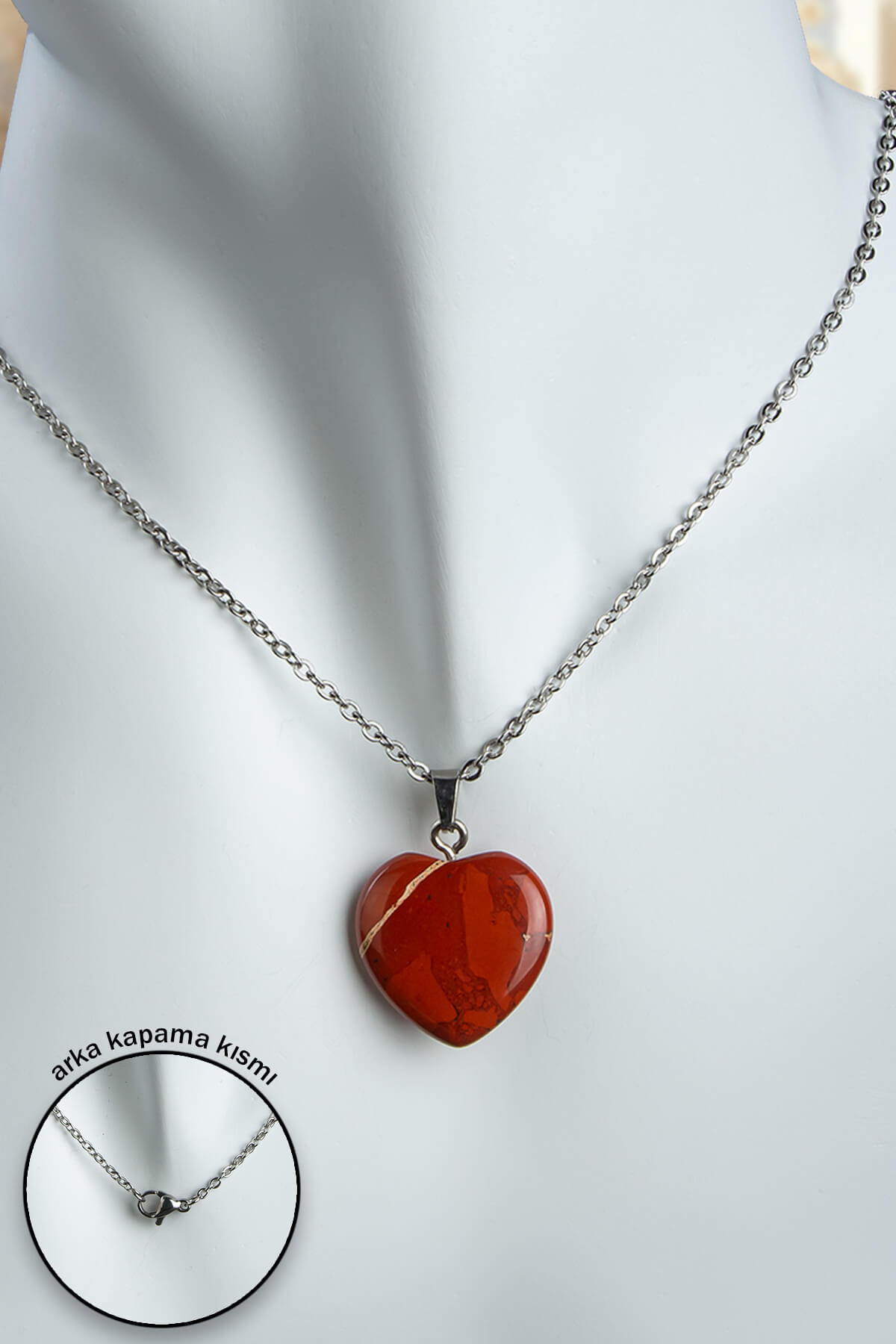 Kırmızı Jasper Doğal Taş Kalp Kesim Zincir Kapamalı Kolye