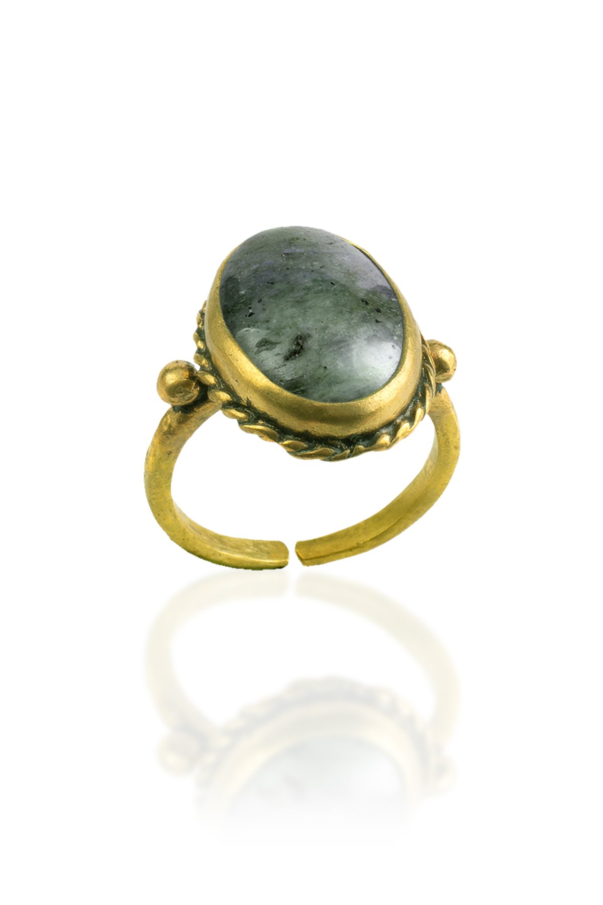 Labradorit Doğal Taş Bronz Oval Kesim Ayarlanabilir Yüzük