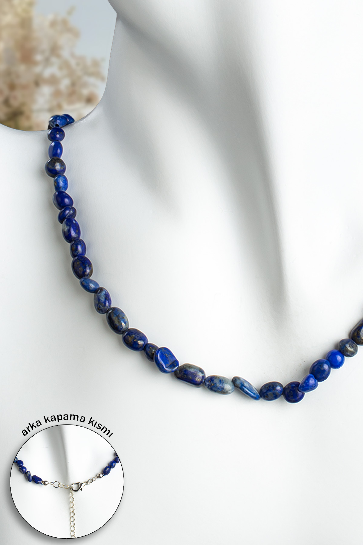 Lapis Lazuli Doğal Taş Tımbıl Kesim 4X6mm Kolye (KLYDGL-0562)