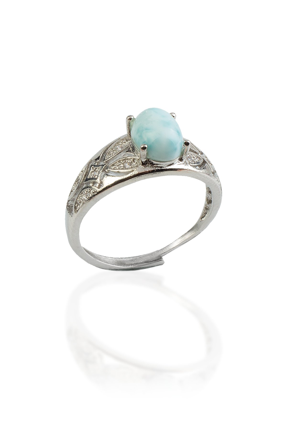 Larimar Doğal Taş Oval Kesim Pirinç Üzeri Gümüş Kaplama Ayarlanabilir Yüzük (DGLYZK-0189)