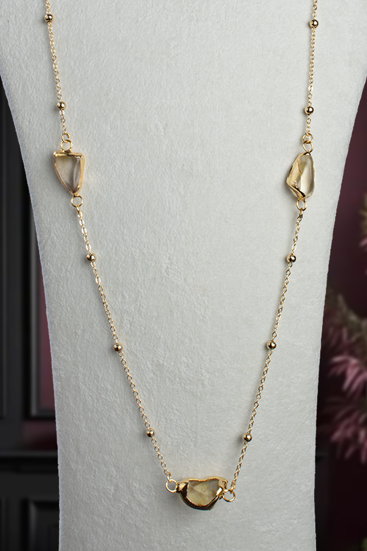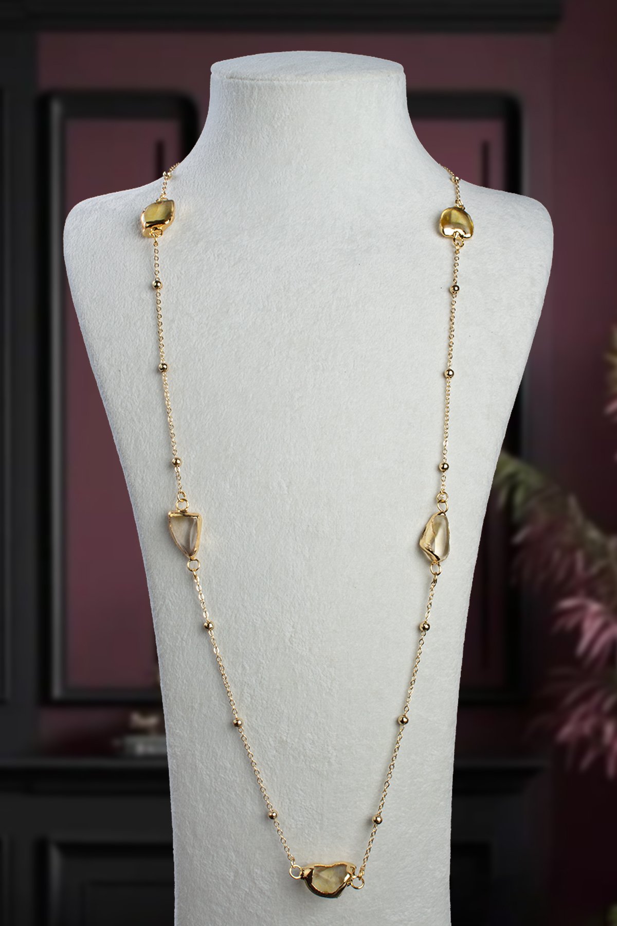 Limon Kuvars Doğal Taş Tamburlu Kütle Taş Uzun Zincir Kolye (KLYDGL-1521)