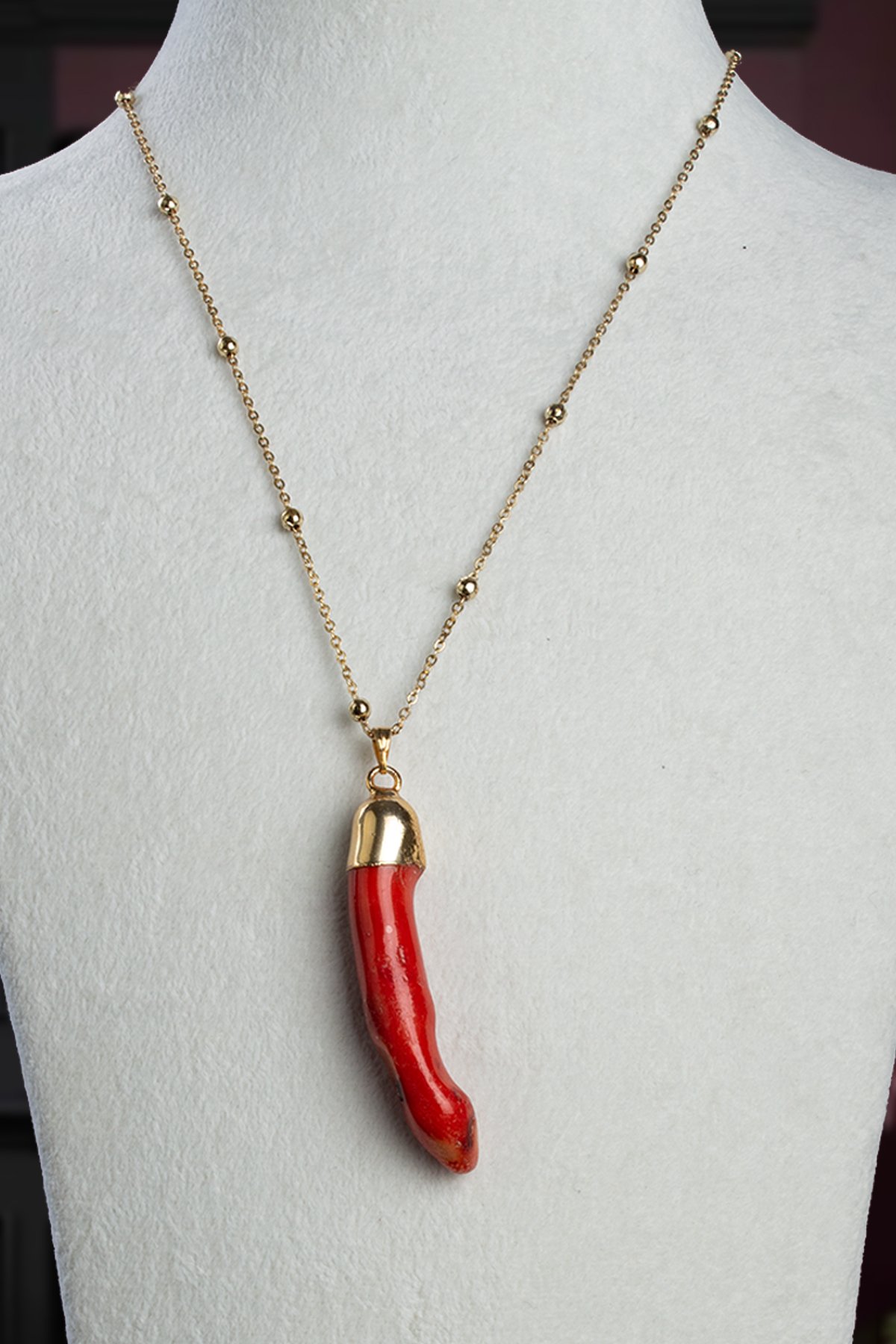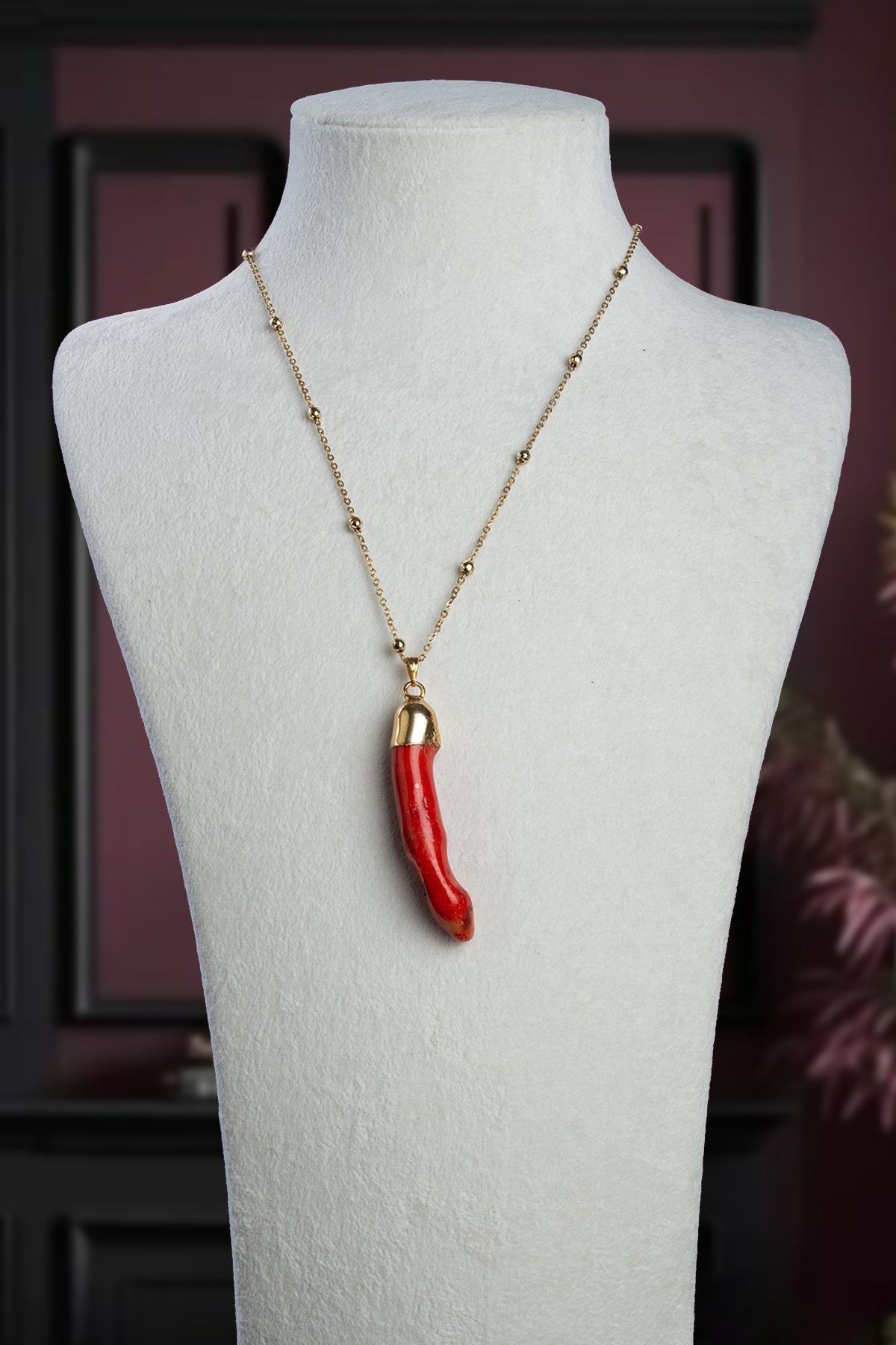 Mercan Doğal Taş Kırmızı Lak Kaplama Kolye