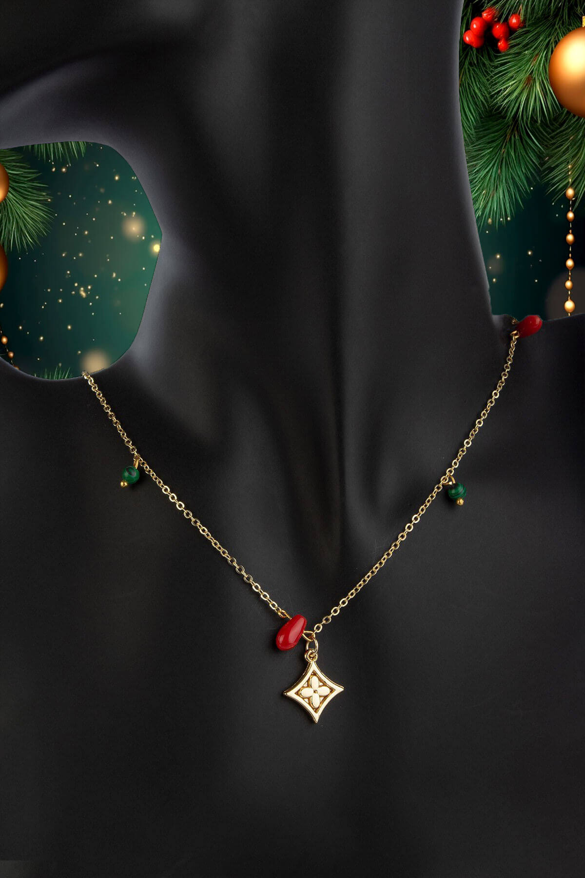 Mercan Malakit Doğal Taş Kokina Temalı Yılbaşı Kolyesi (KLYDGL-0051)