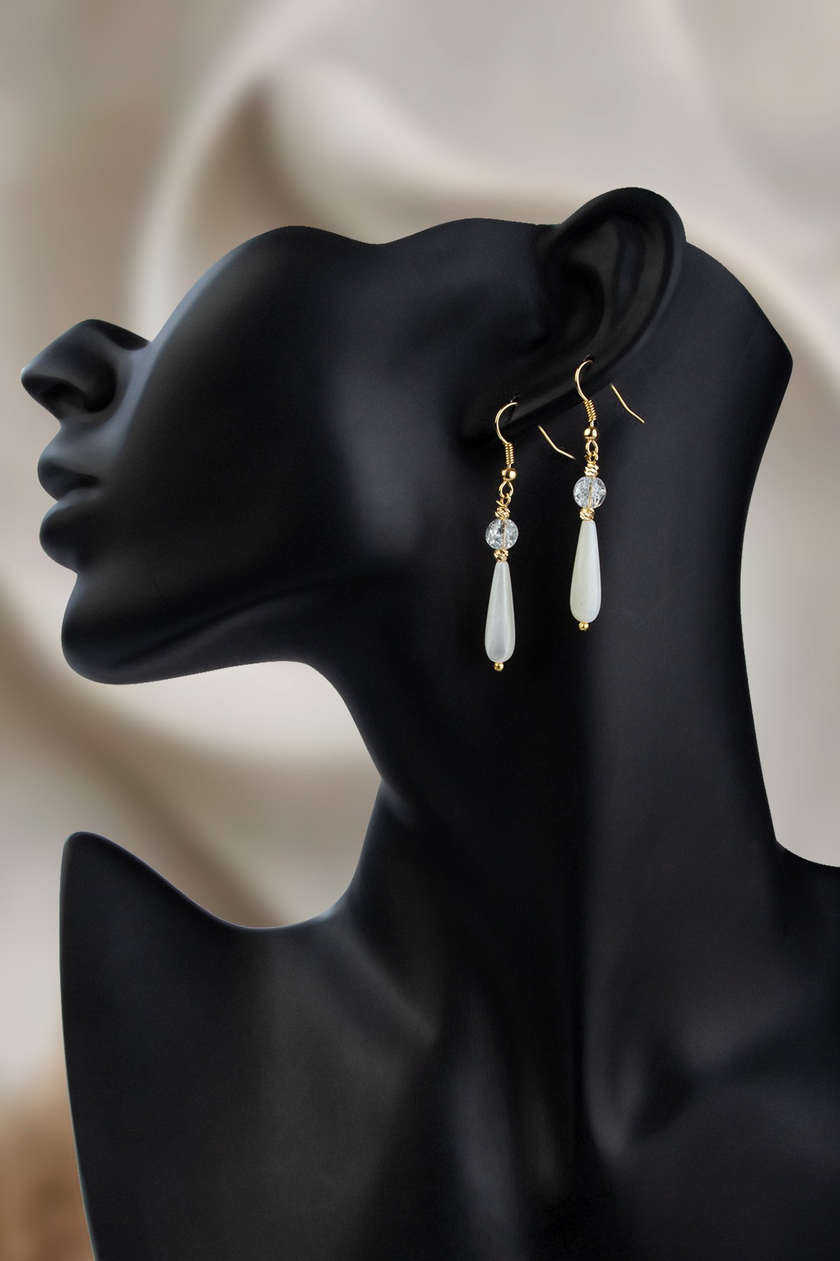 Necef ve Sedef Doğal Taş Damla Uçlu Sallantı Küpe (DGLKUP-0357)